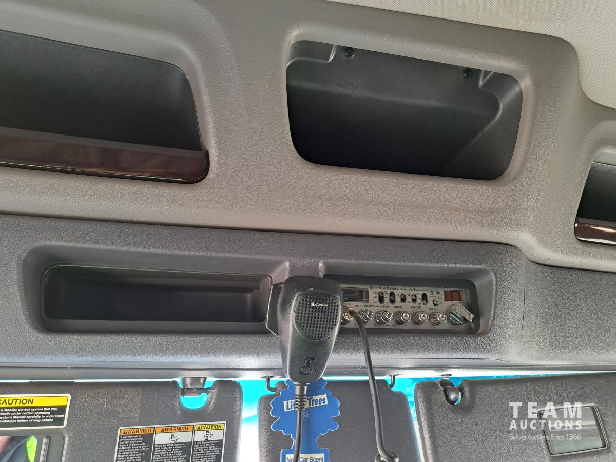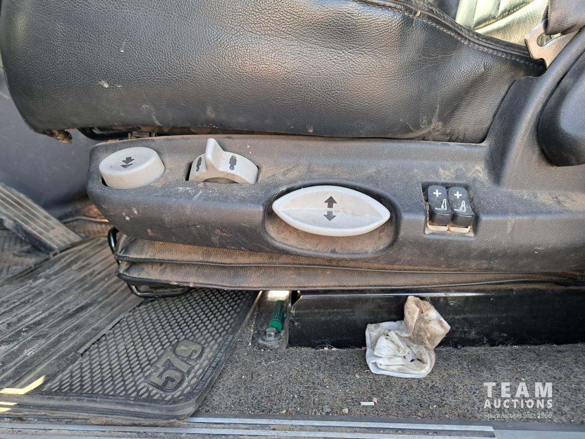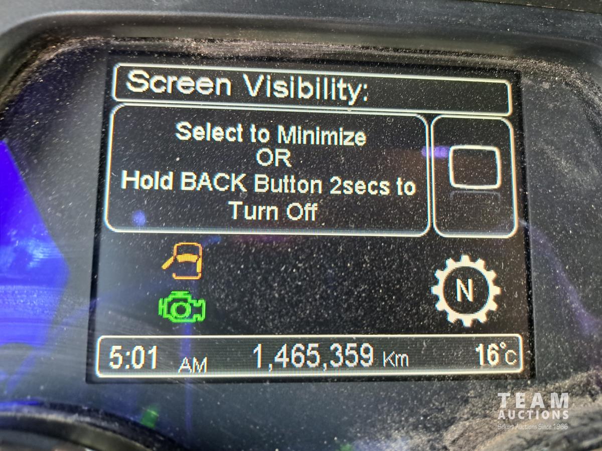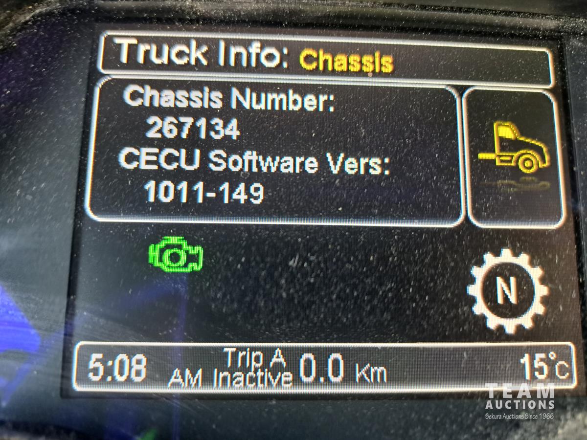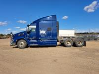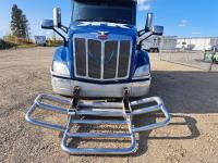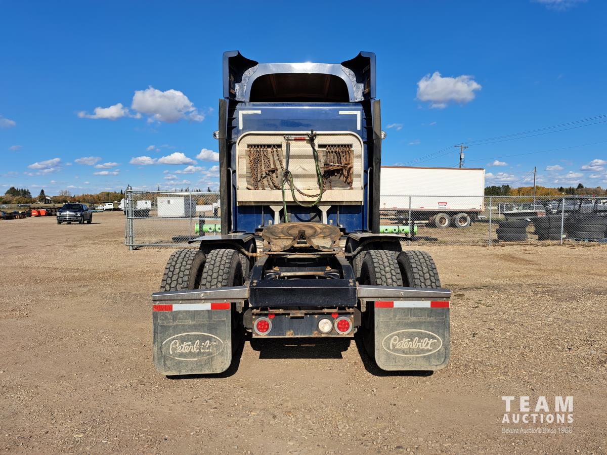 Paccar MX13 12.9 L Inline 6-Cylinder 510 HP diesel engine, DEF required, engine heater, engine brake, Eaton Fuller PACCAR TX-12 auto shift transmission, cab heater, high rise 80 inch sleeper, A/C, cruise control, leather interior, navigation system, radio, aluminum moose bumper, air ride cab, chain holders, 5,988 lb front axle, 20,000 lb rear axles, aluminum outer wheels, 11R22.5 tires