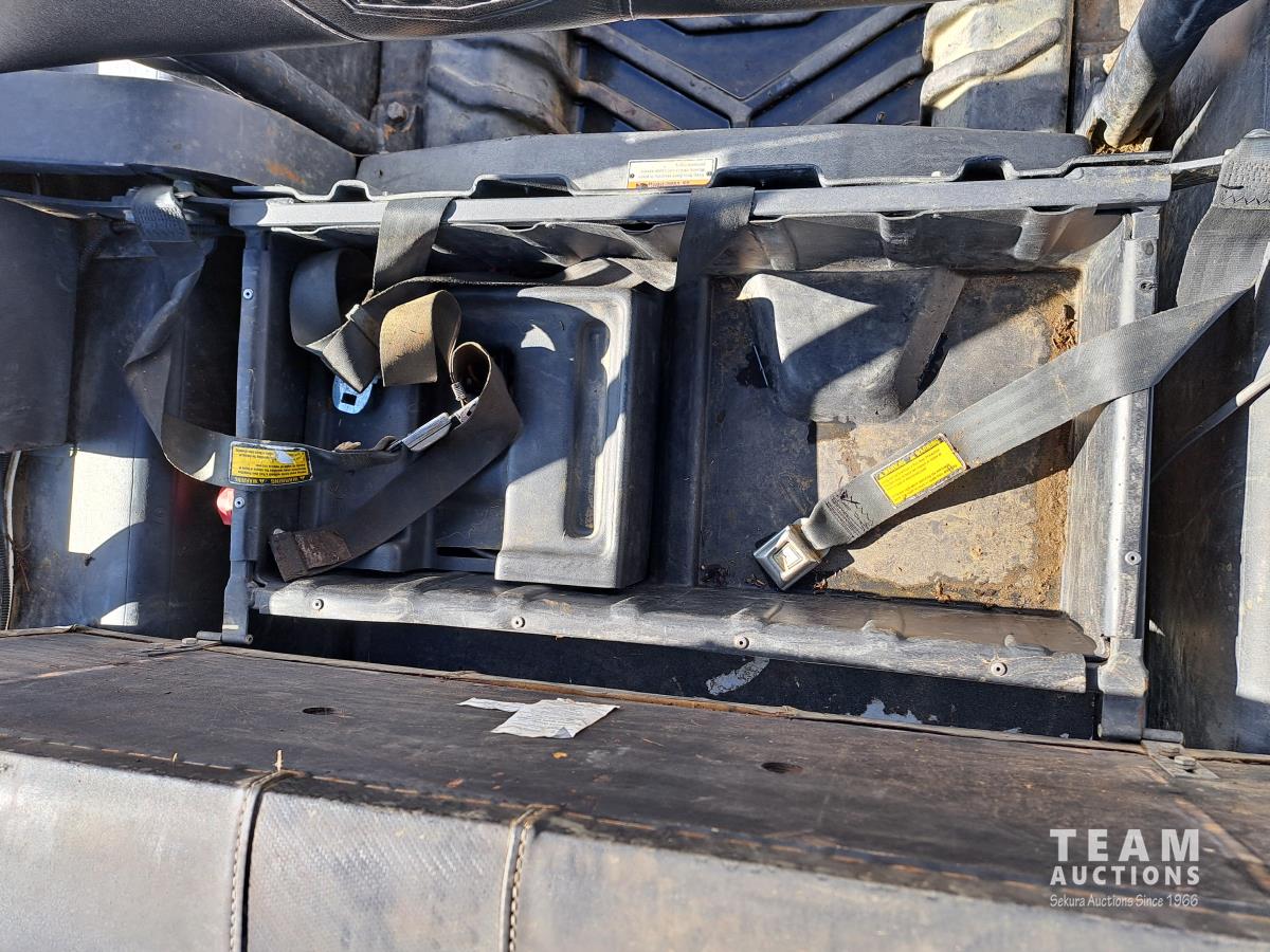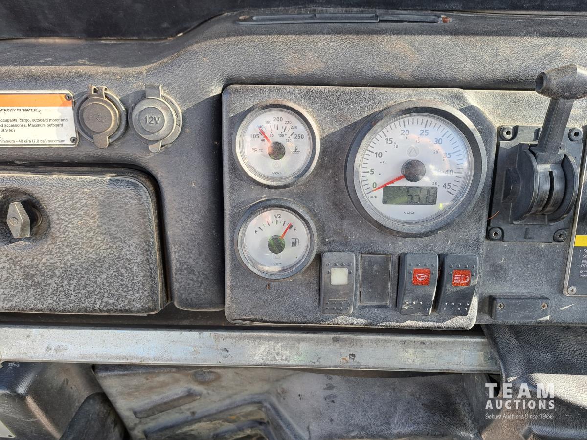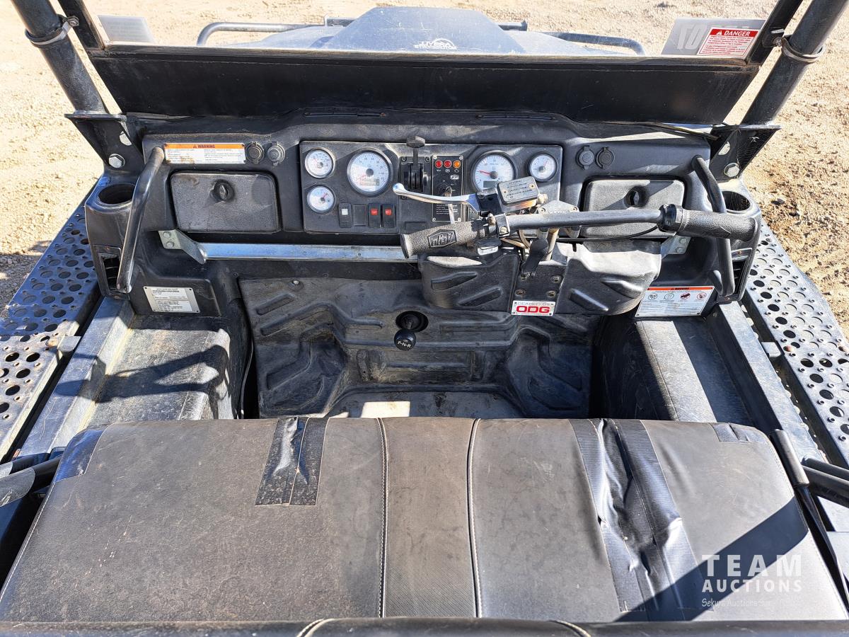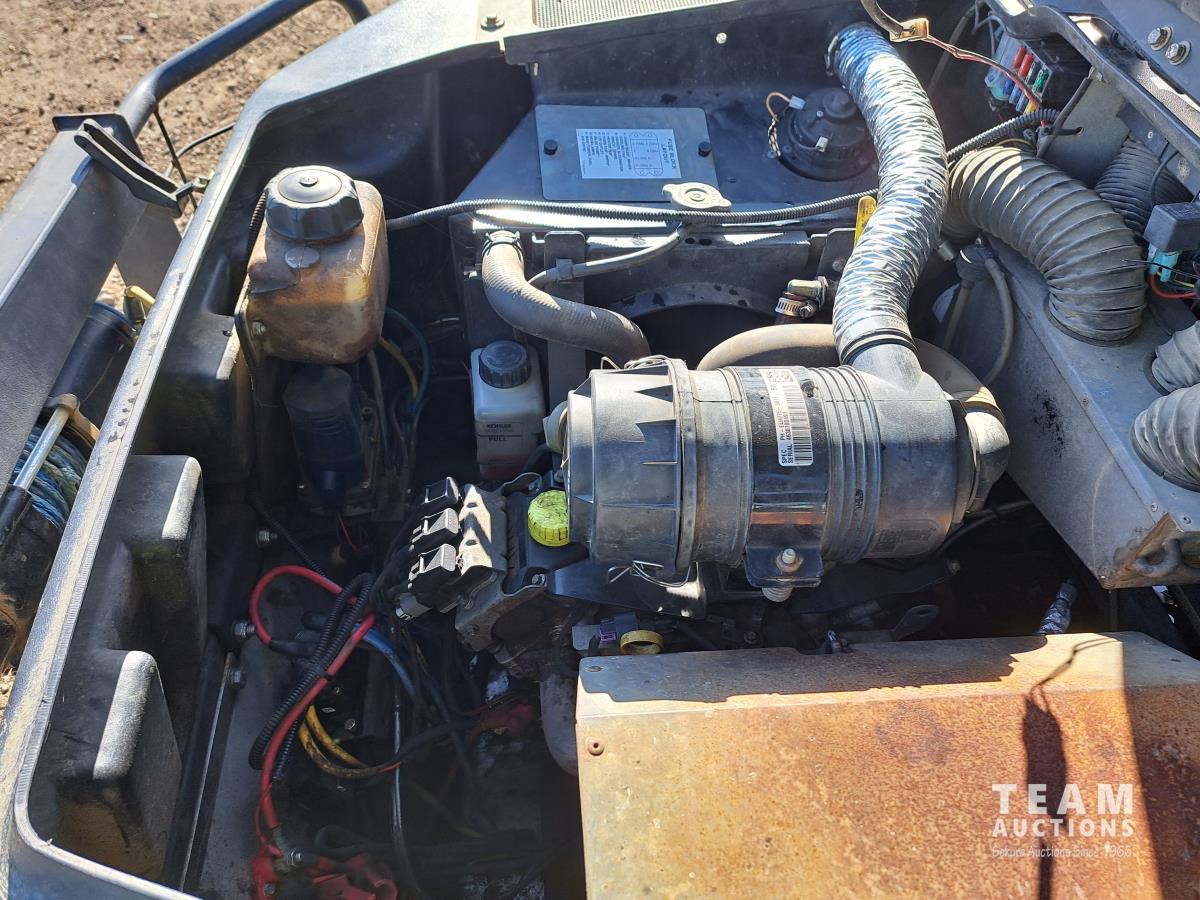 Kimpex winch, nylon rope winchline, under hood fan, rear hitch, rear winch control ports, forward neutral and reverse shifter, KOHLER 747 cc Efi gas engine, metal grated walkway.