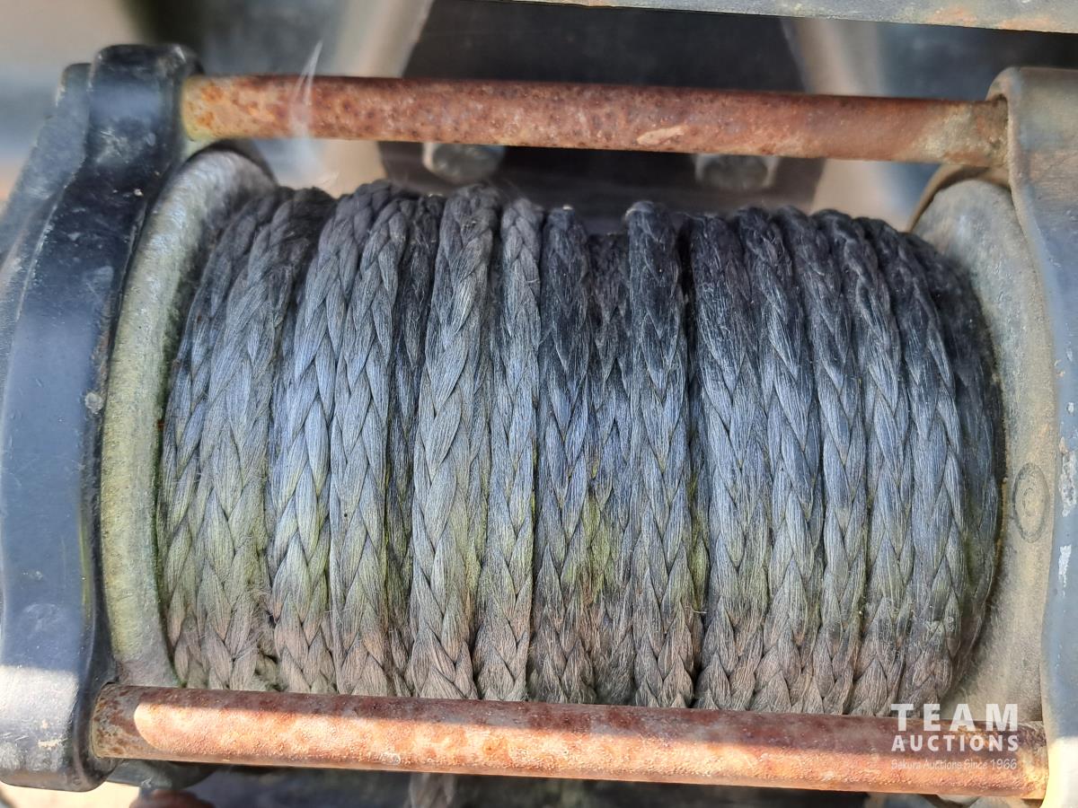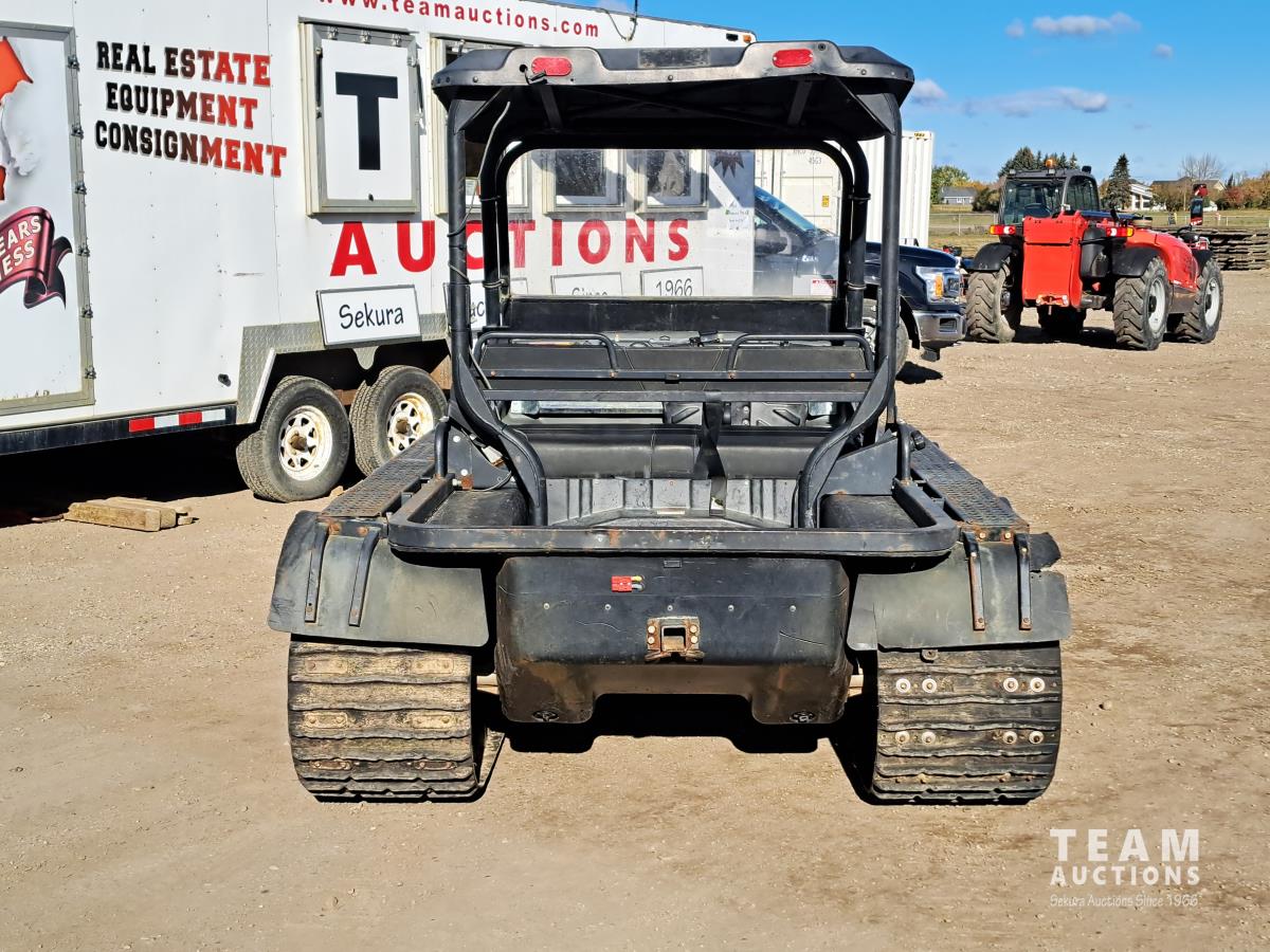 Warn winch, nylon rope winchline, rear hitch, rear winch control ports, forward neutral and reverse shifter, 18 inch wide tracks, KOHLER 747 cc Efi gas engine, metal grated walkway, under seat storage.