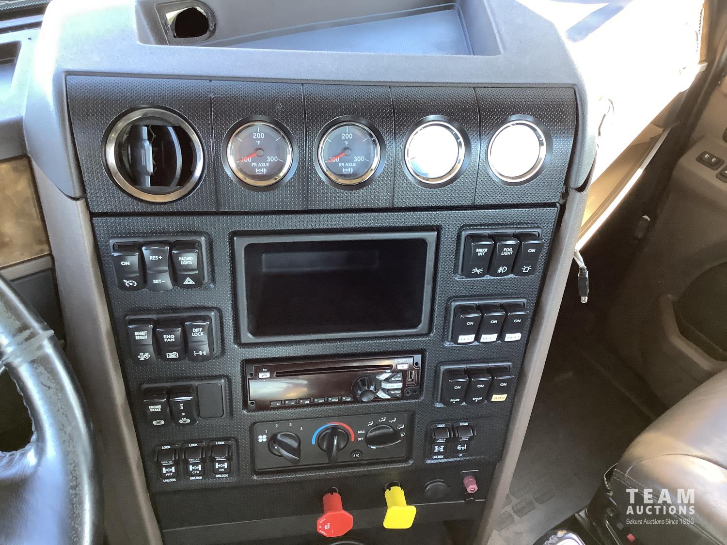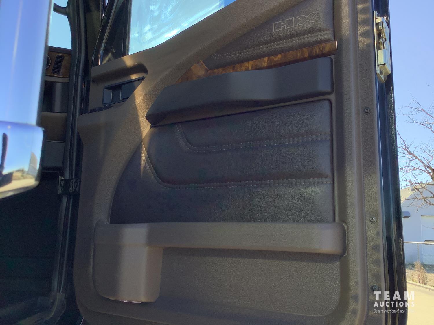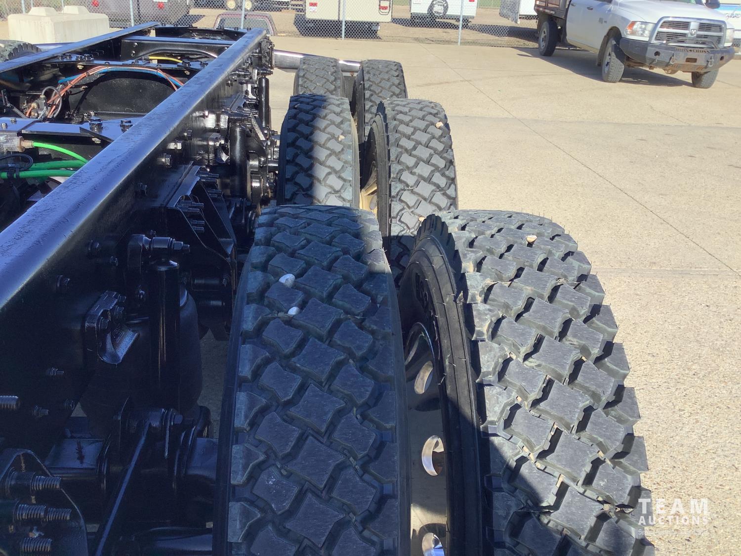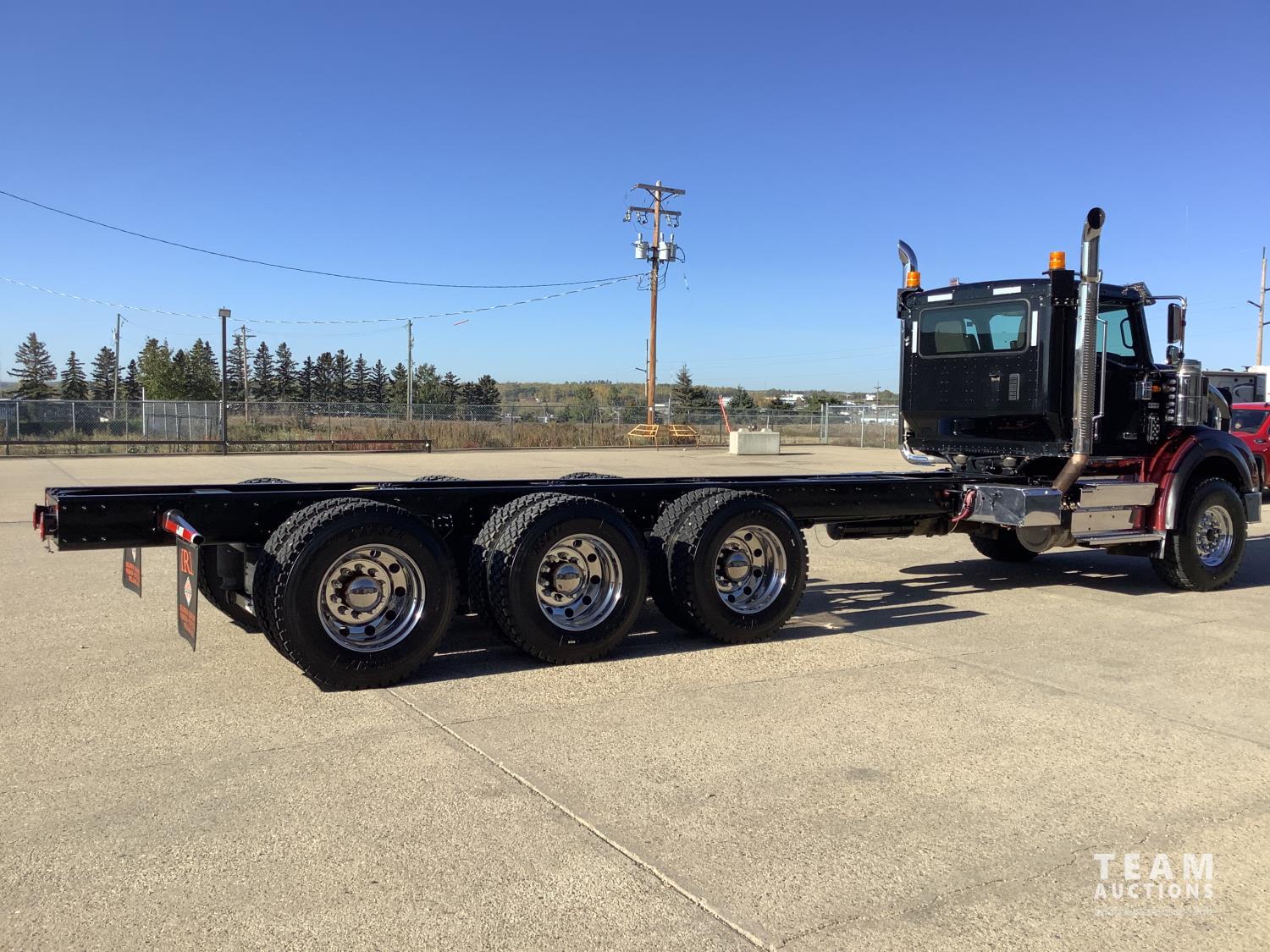 Cummins X-15 565 HP engine, engine brake, 18 speed manual transmission, air ride extended cab, A/C, radio, p/w, p/l, p/m, twin heated National air ride seats, beacons, centre front bumper tow block, Henderson air ride suspension, 52,998 lb rear axles, full lockers, 272 inch WB, 20,000 lb front axle with twin steer boxes, 310 inches from back of cab to rear of the frame, all new 11R24.5 rears, all aluminum wheels, 425/65R22.5 front tires