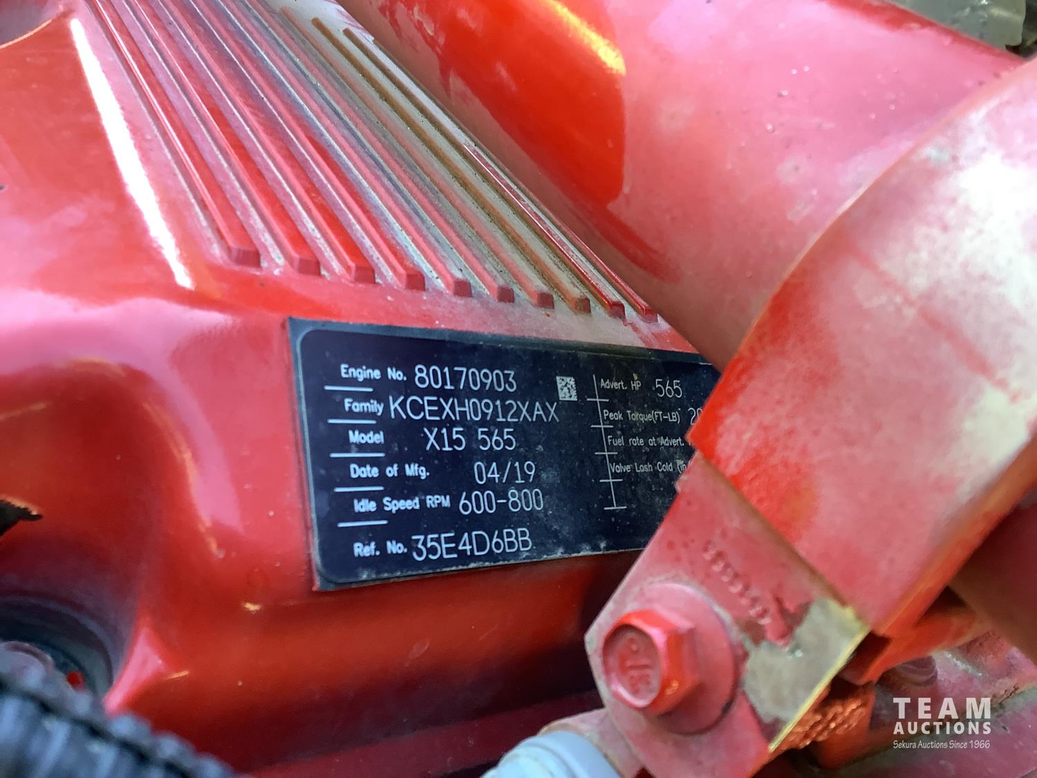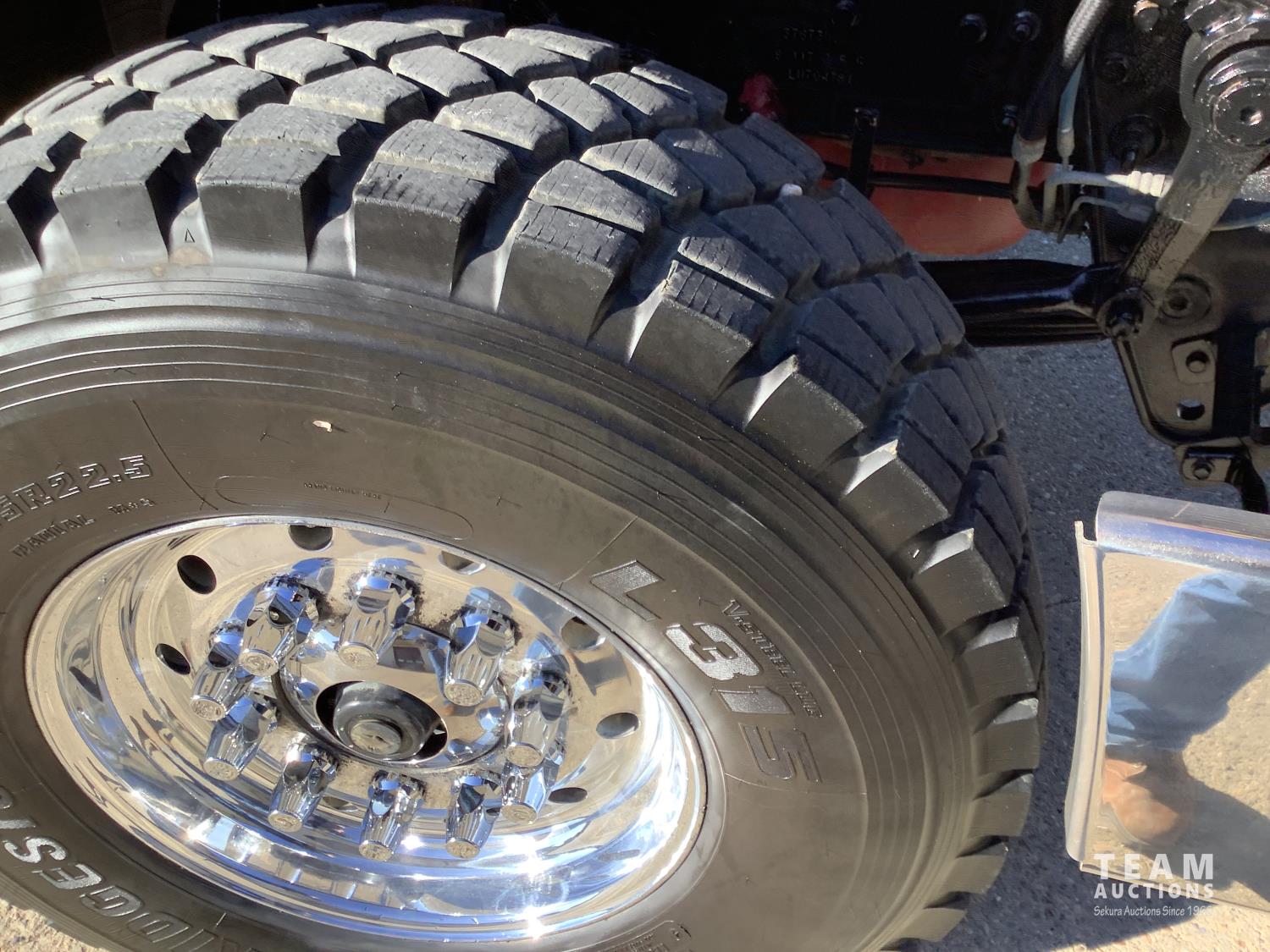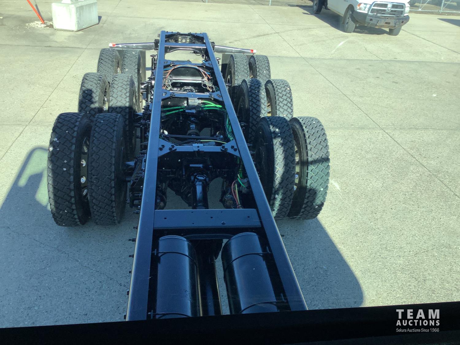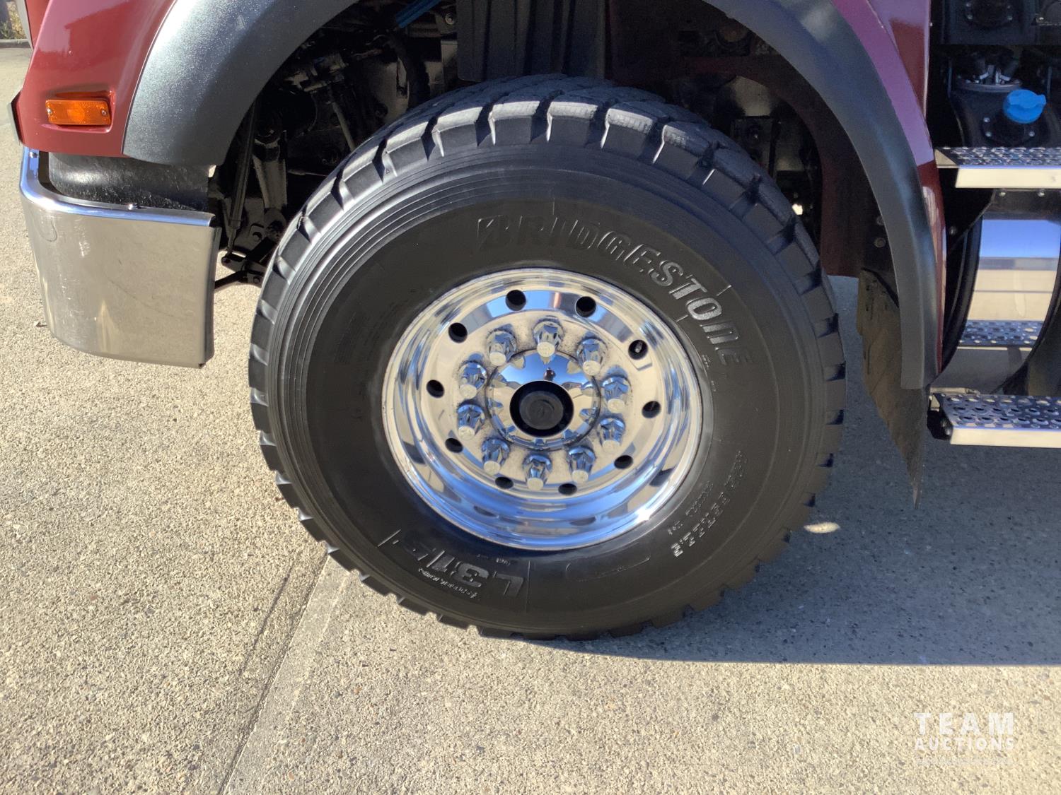 Cummins X-15 565 HP engine, engine brake, 18 speed manual transmission, air ride extended cab, A/C, radio, p/w, p/l, p/m, twin heated National air ride seats, beacons, centre front bumper tow block, Henderson air ride suspension, 52,998 lb rear axles, full lockers, 272 inch WB, 20,000 lb front axle with twin steer boxes, 310 inches from back of cab to rear of the frame, all new 11R24.5 rears, all aluminum wheels, 425/65R22.5 front tires