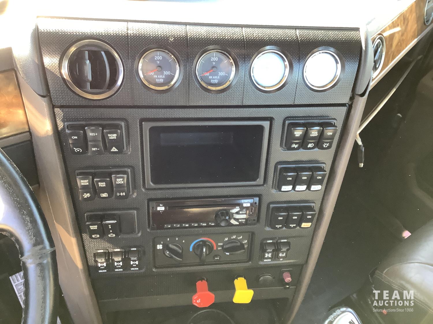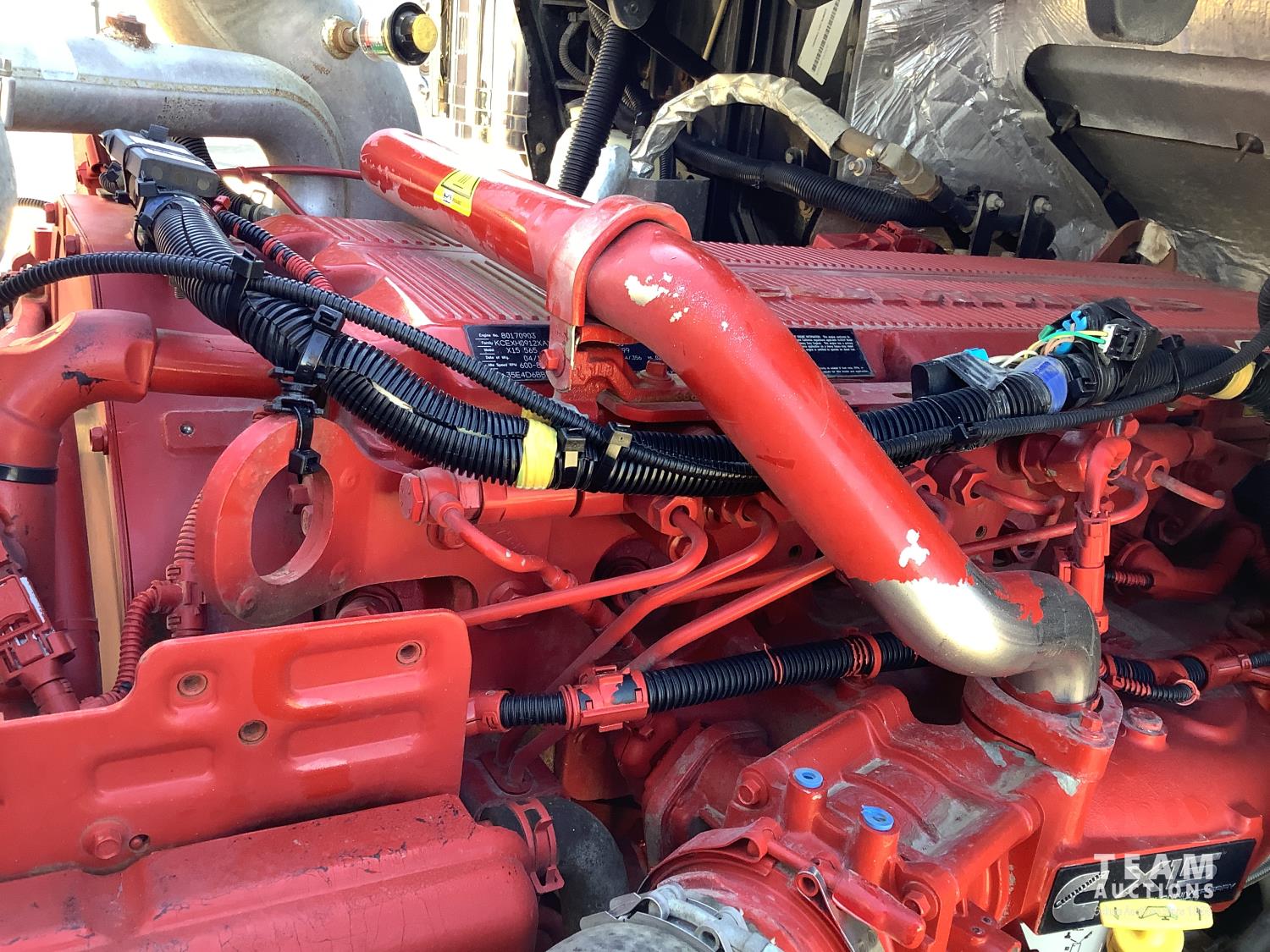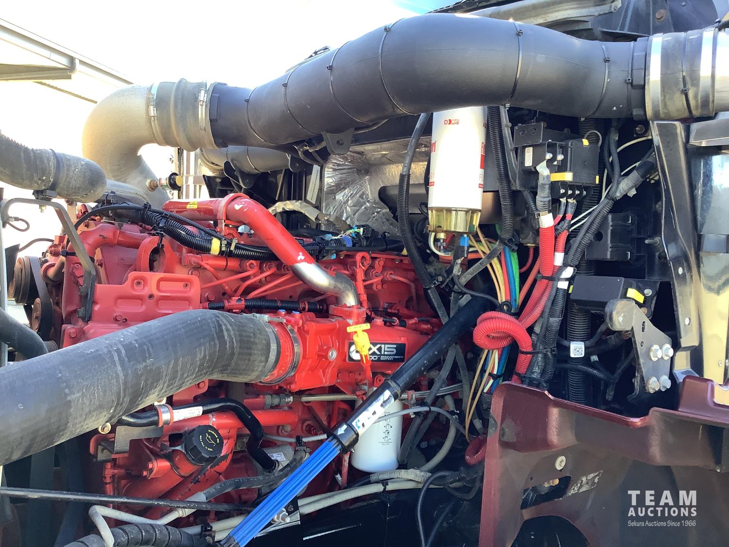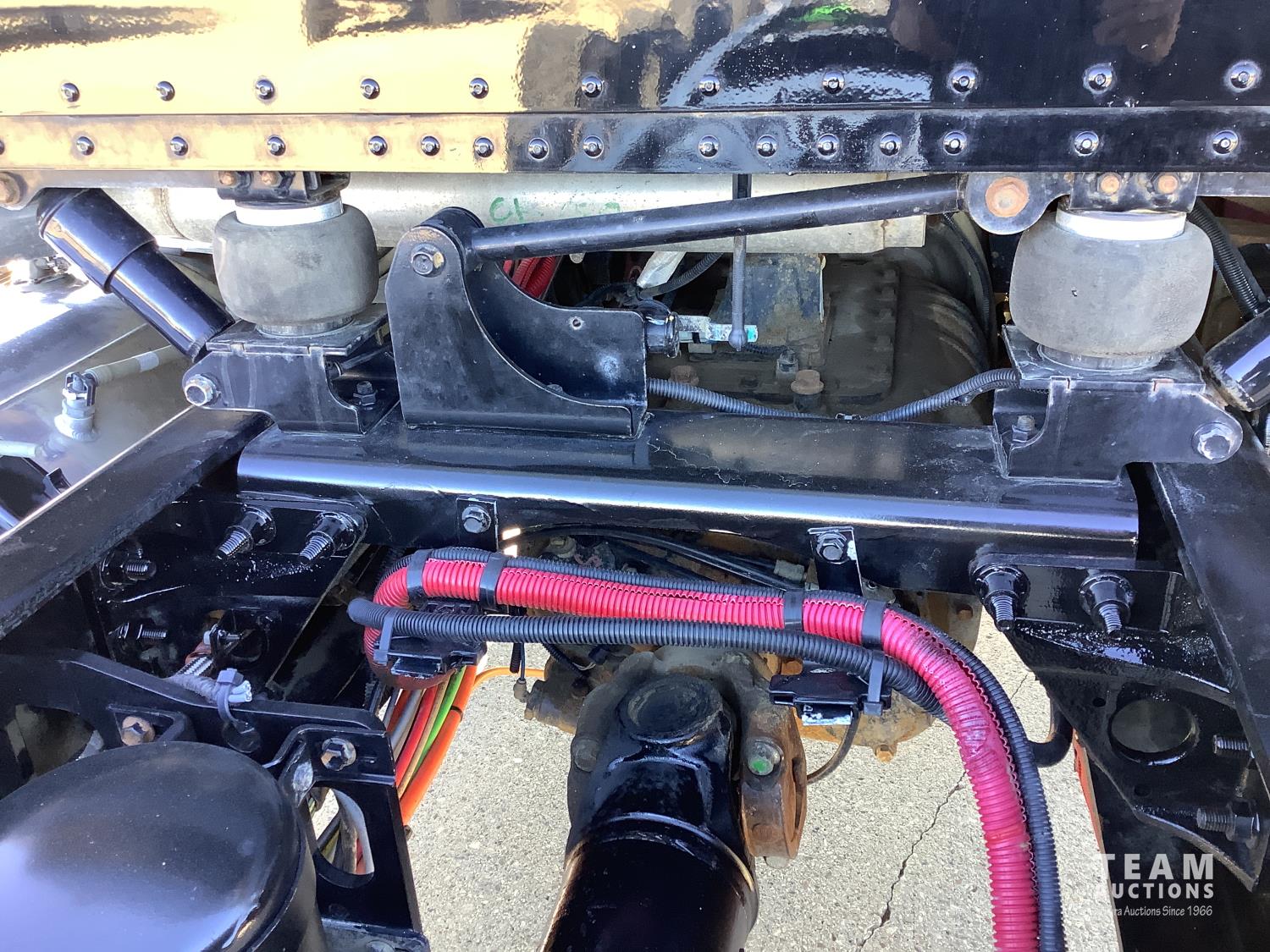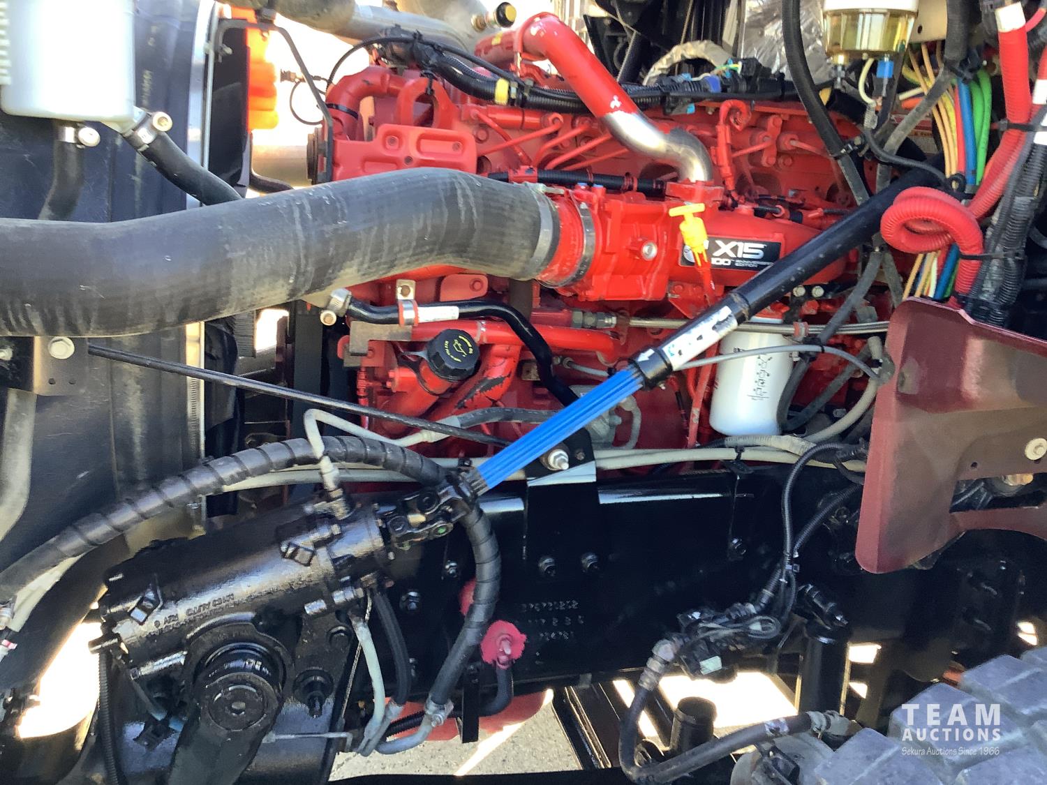 Cummins X-15 565 HP engine, engine brake, 18 speed manual transmission, air ride extended cab, A/C, radio, p/w, p/l, p/m, twin heated National air ride seats, beacons, centre front bumper tow block, Henderson air ride suspension, 52,998 lb rear axles, full lockers, 272 inch WB, 20,000 lb front axle with twin steer boxes, 310 inches from back of cab to rear of the frame, all new 11R24.5 rears, all aluminum wheels, 425/65R22.5 front tires
