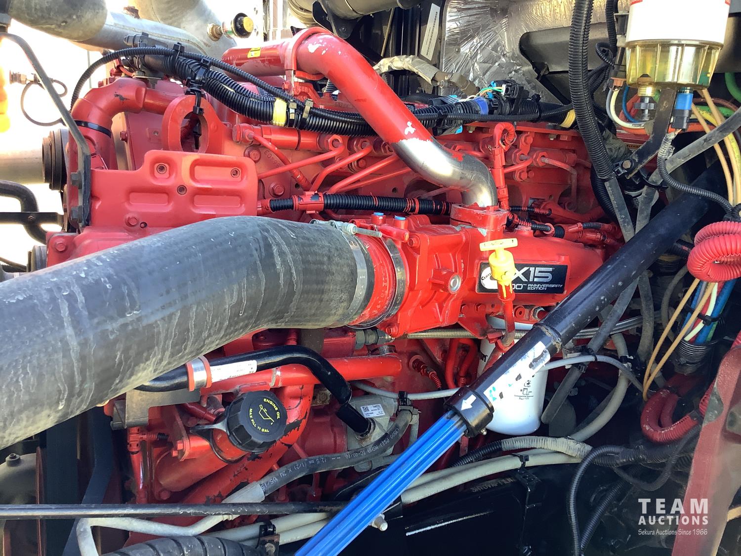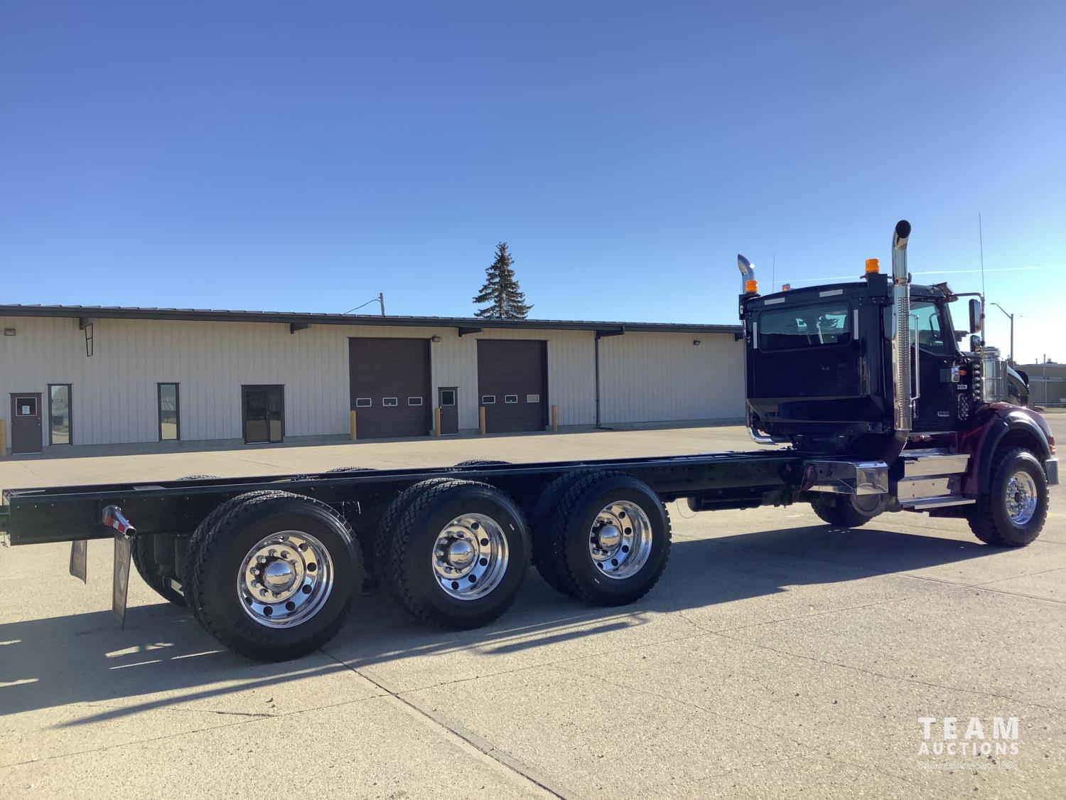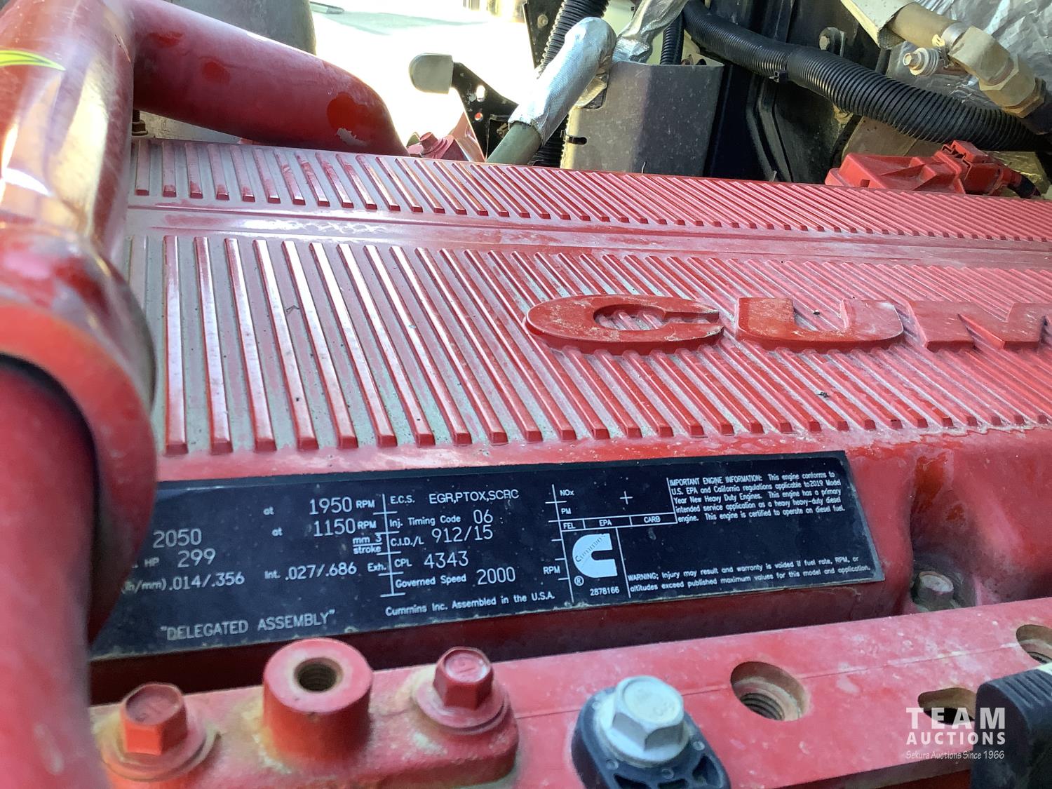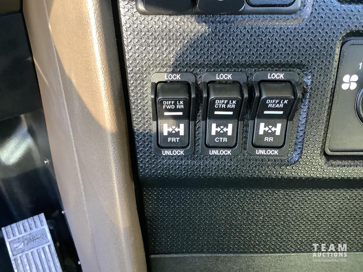 Cummins X-15 565 HP engine, engine brake, 18 speed manual transmission, air ride extended cab, A/C, radio, p/w, p/l, p/m, twin heated National air ride seats, beacons, centre front bumper tow block, Henderson air ride suspension, 52,998 lb rear axles, full lockers, 272 inch WB, 20,000 lb front axle with twin steer boxes, 310 inches from back of cab to rear of the frame, all new 11R24.5 rears, all aluminum wheels, 425/65R22.5 front tires