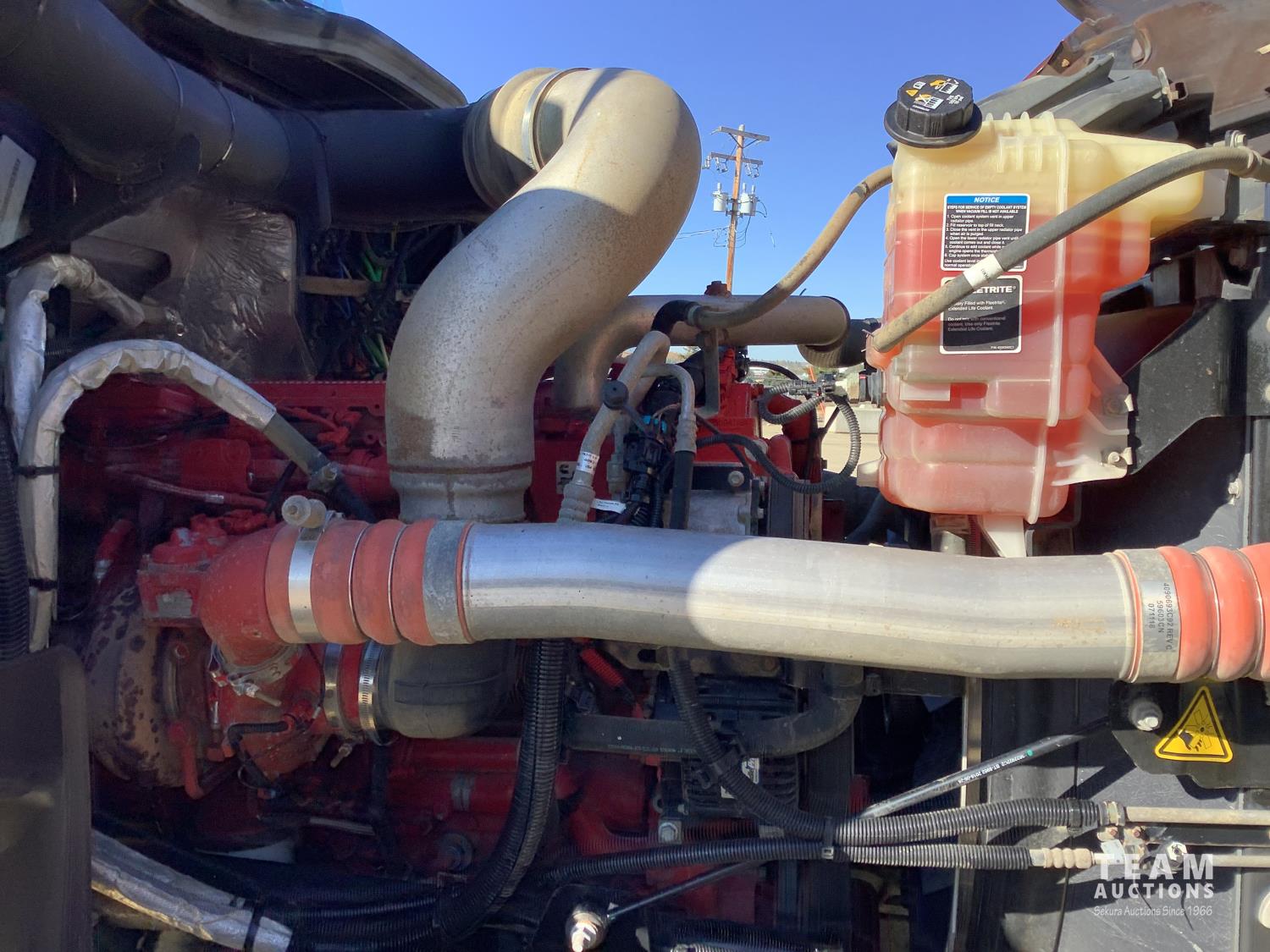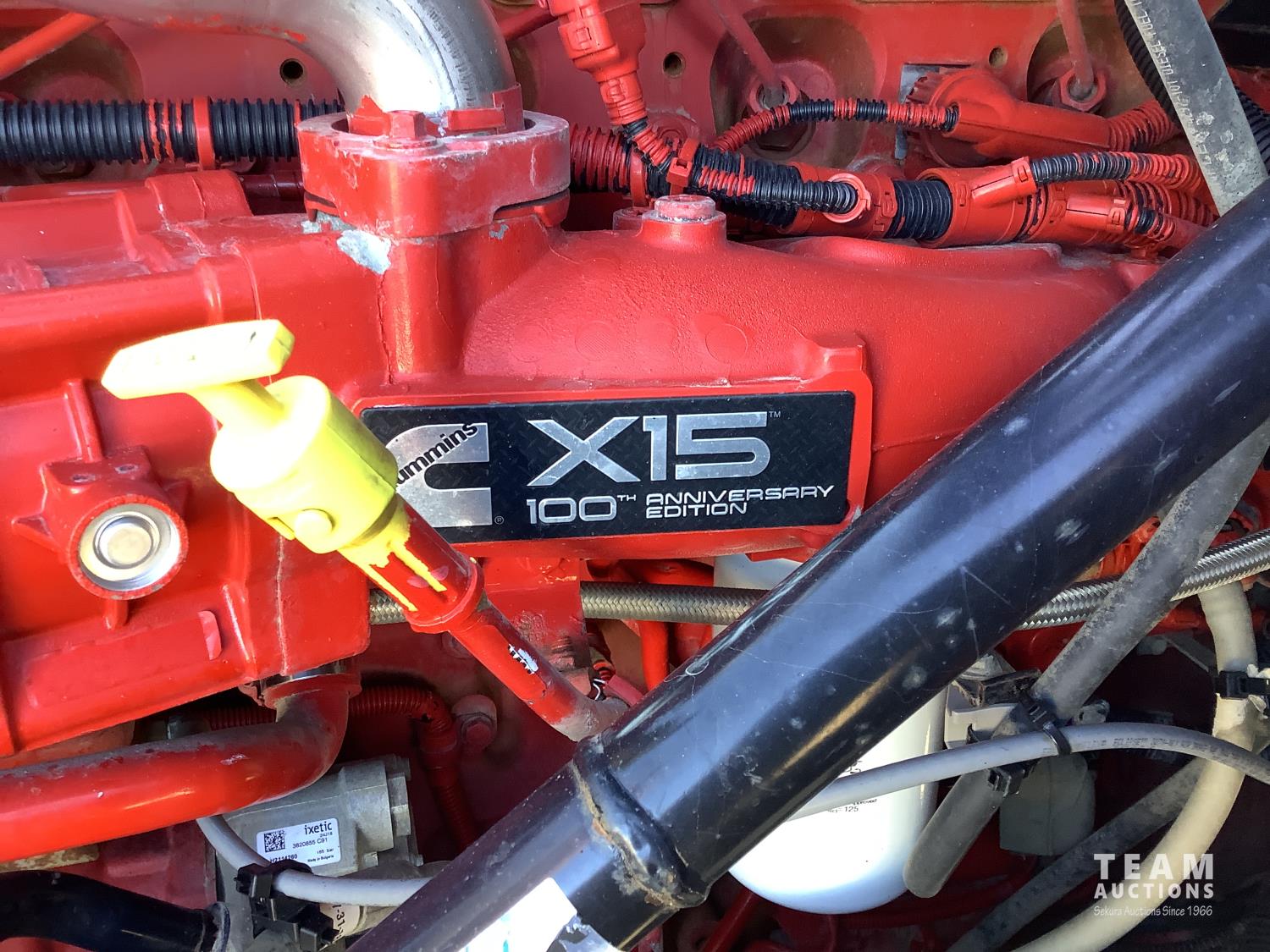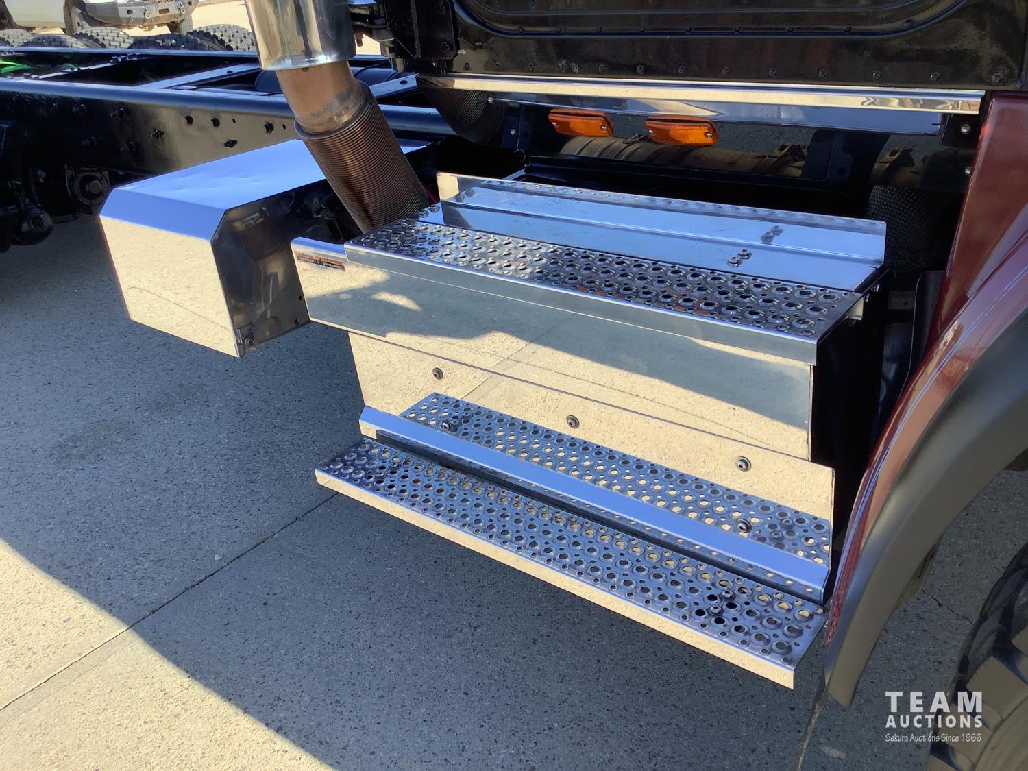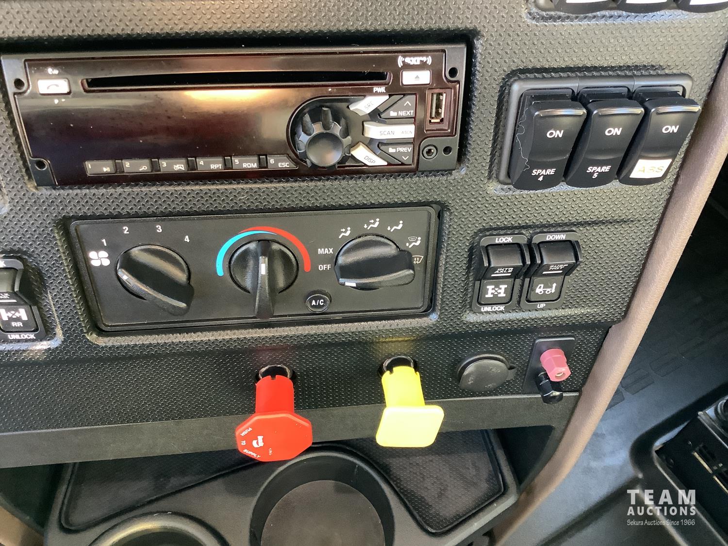 Cummins X-15 565 HP engine, engine brake, 18 speed manual transmission, air ride extended cab, A/C, radio, p/w, p/l, p/m, twin heated National air ride seats, beacons, centre front bumper tow block, Henderson air ride suspension, 52,998 lb rear axles, full lockers, 272 inch WB, 20,000 lb front axle with twin steer boxes, 310 inches from back of cab to rear of the frame, all new 11R24.5 rears, all aluminum wheels, 425/65R22.5 front tires
