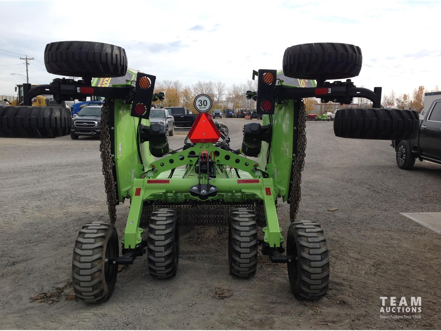 1000 PTO, light package, front and rear deck chains, pneumatic tires on wings, all walking axles, locked in transport