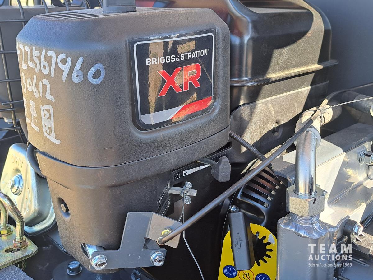 13.5 HP Briggs and Stratton gas engine, mechanical thumb, 36 inch backfill blade, 16 inch tooth bucket, auxiliary hydraulic outlets, LED lights, overall dimensions 91 inch long x 39 inch wide x 83 inch high, track length 48.43 inch x 7 inch wide, digging bucket capacity 583 lb, tool kit and operators manual