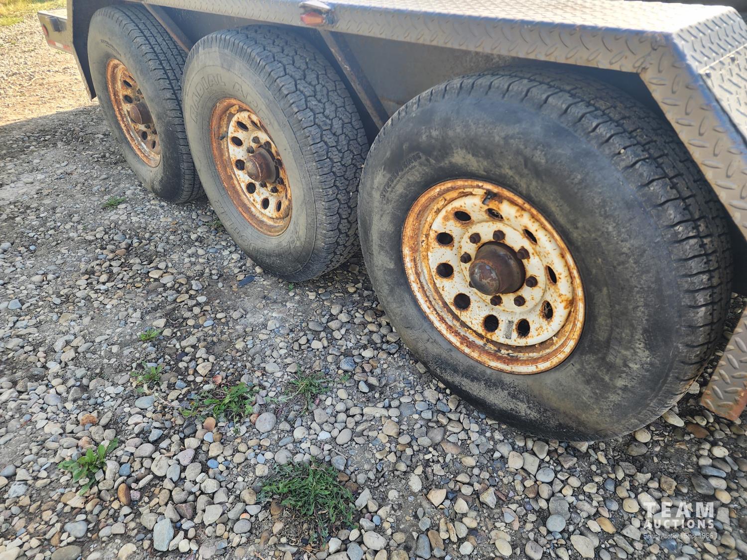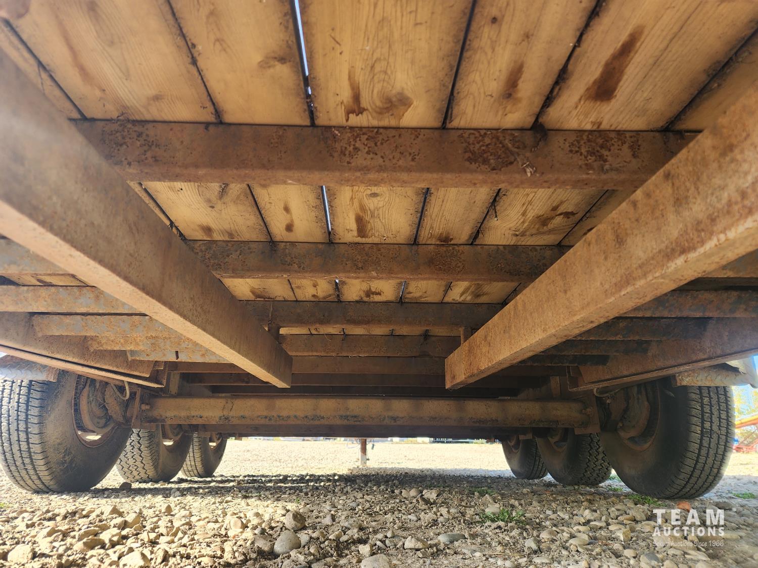 80 inch wide deck, wood deck, slide in ramps, torsion suspension, ball hitch, wood sides, 7000 lb axles, 235/85R16 tires
