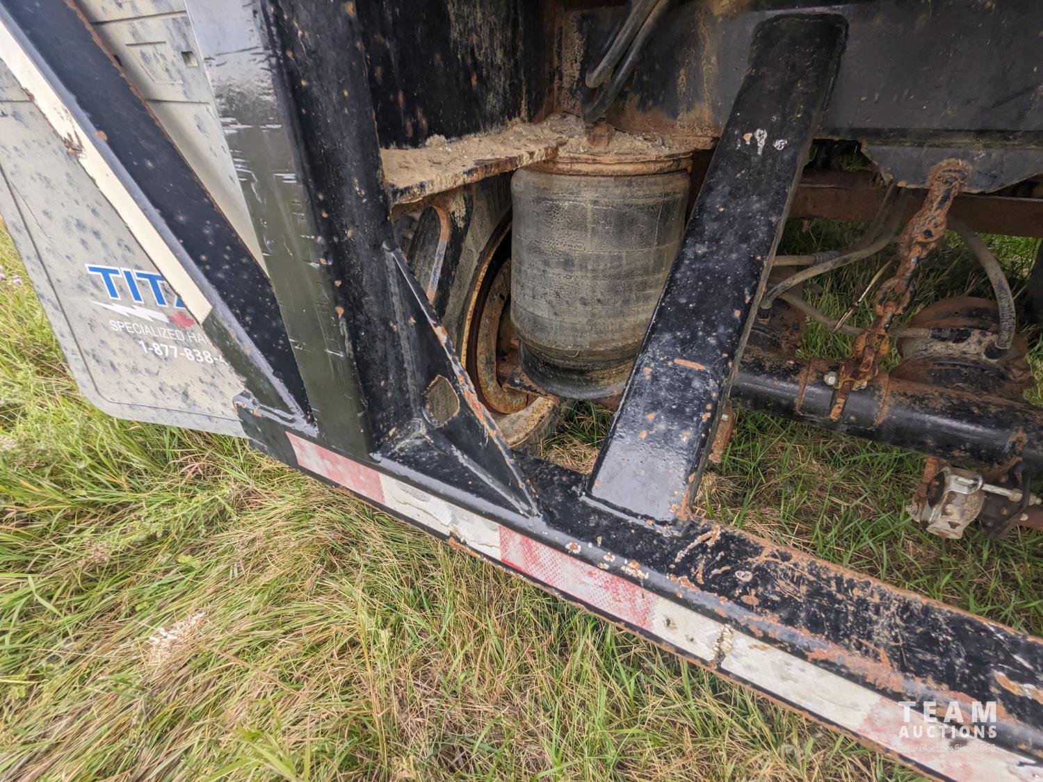 102 inch wide deck, wood deck, foldup dollies, cargo winches, rear live roll, pin pockets, air ride suspension, 11R24.5 tires