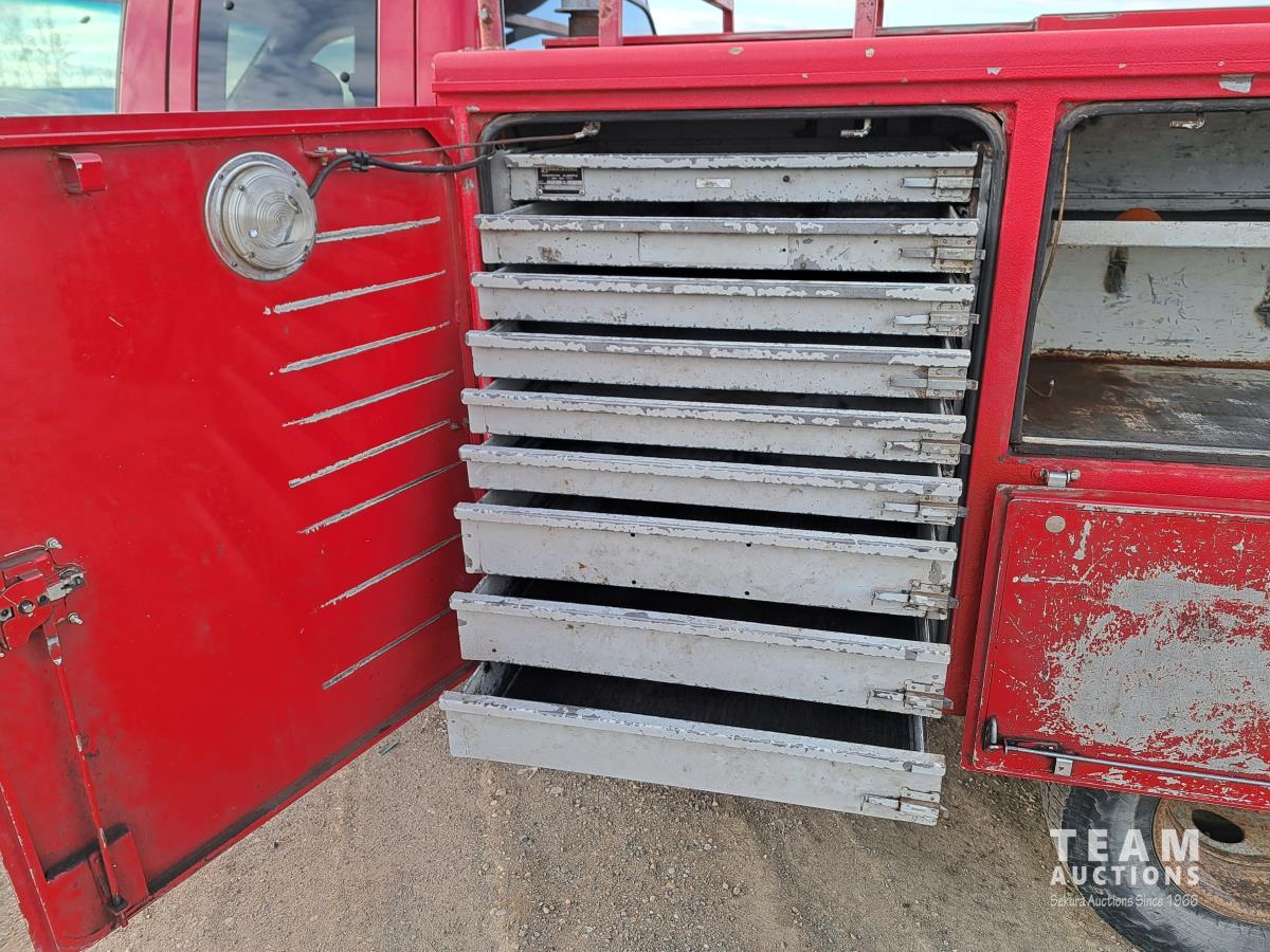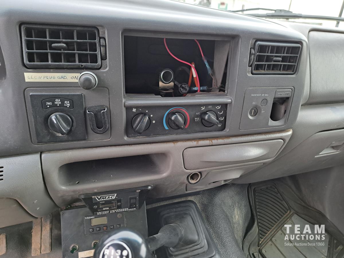 7.3 L, V8, diesel, 5 speed manual transmission, P/W, P/L, A/C, steel toolbox, Power Mirrors, cruise control, VMAC air compressor, Webasto heater, trailer brake control, led work lights, spare tire, front tow hooks, 30 gallon 200psi air tank, rear hitch receiver, steel rims, , 235/85R16 tires