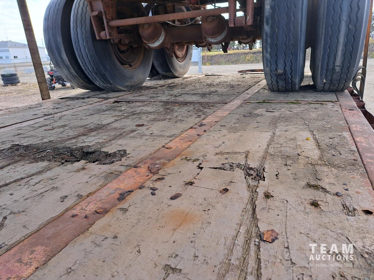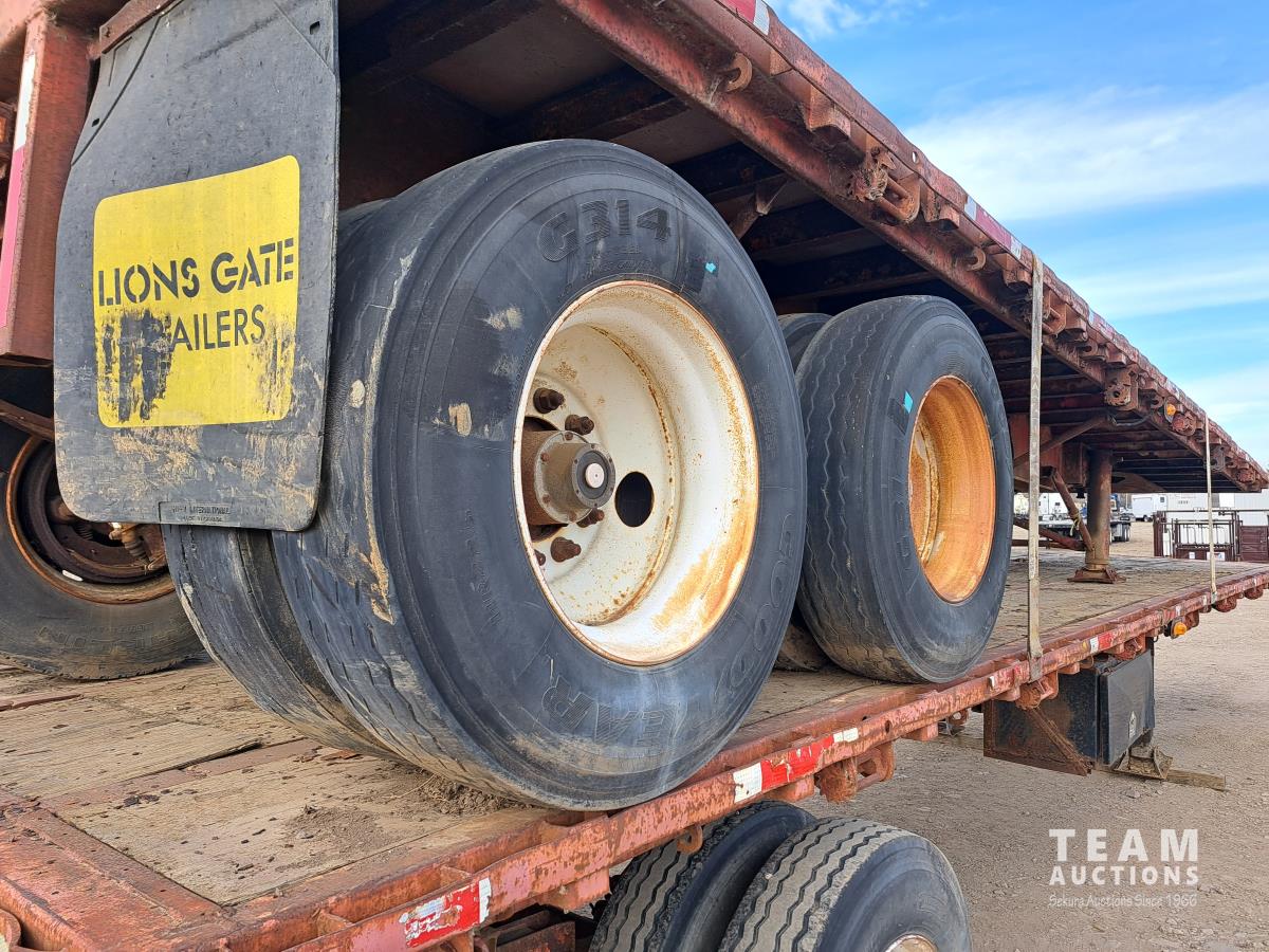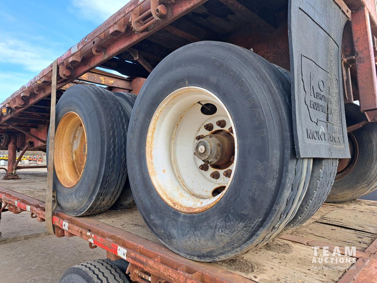 96 inch wide deck, wood deck, stake pockets, rub rails, cargo winches, tool / storage box, air brakes, Lead 32ft, Pup 28ft, steel rims, landing gear, , spring suspension, 11R22.5 tires