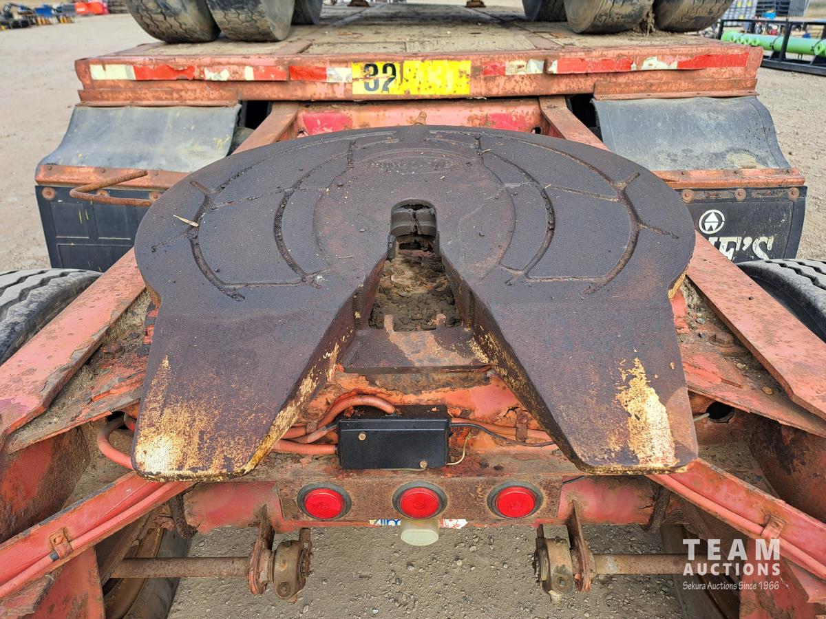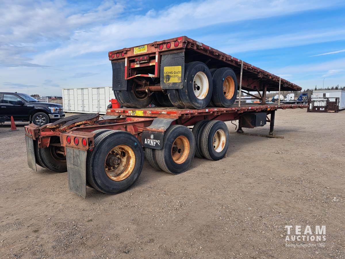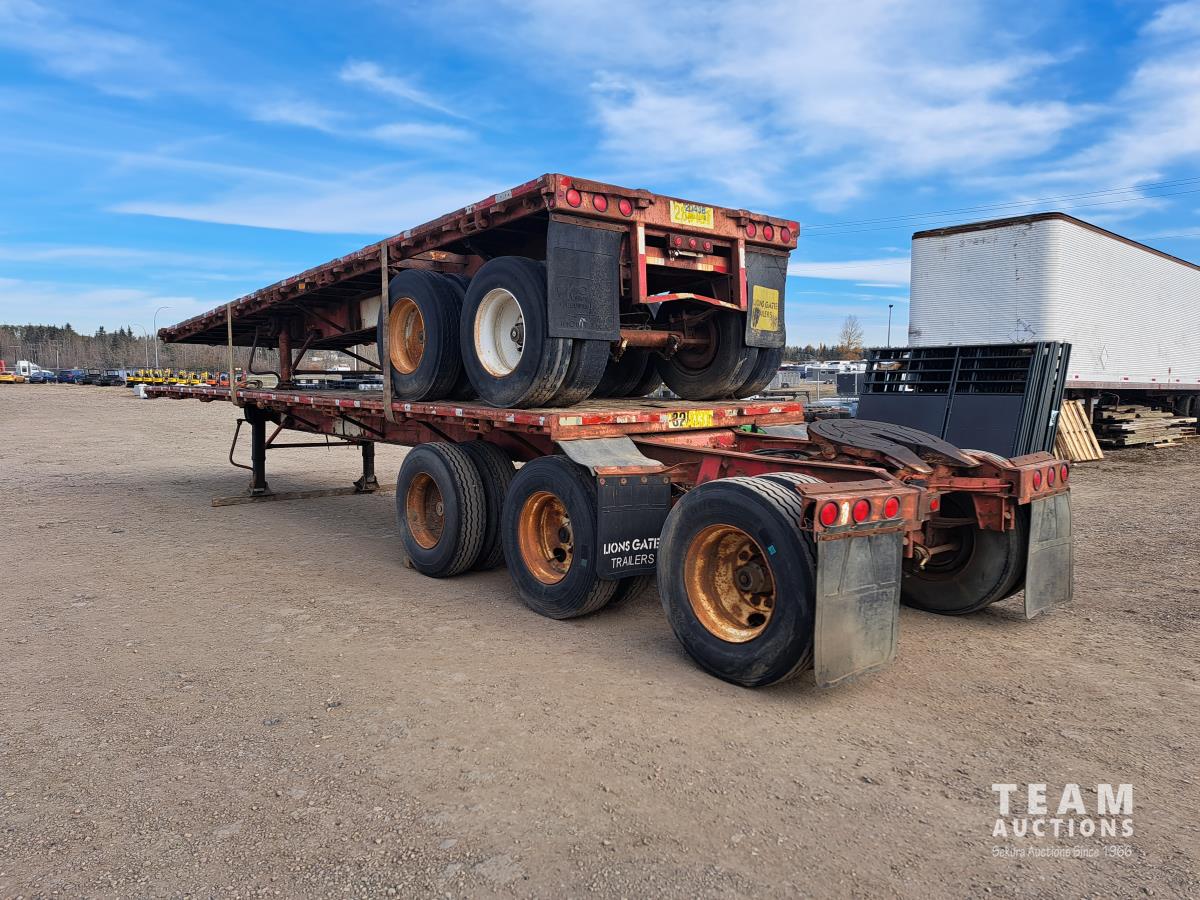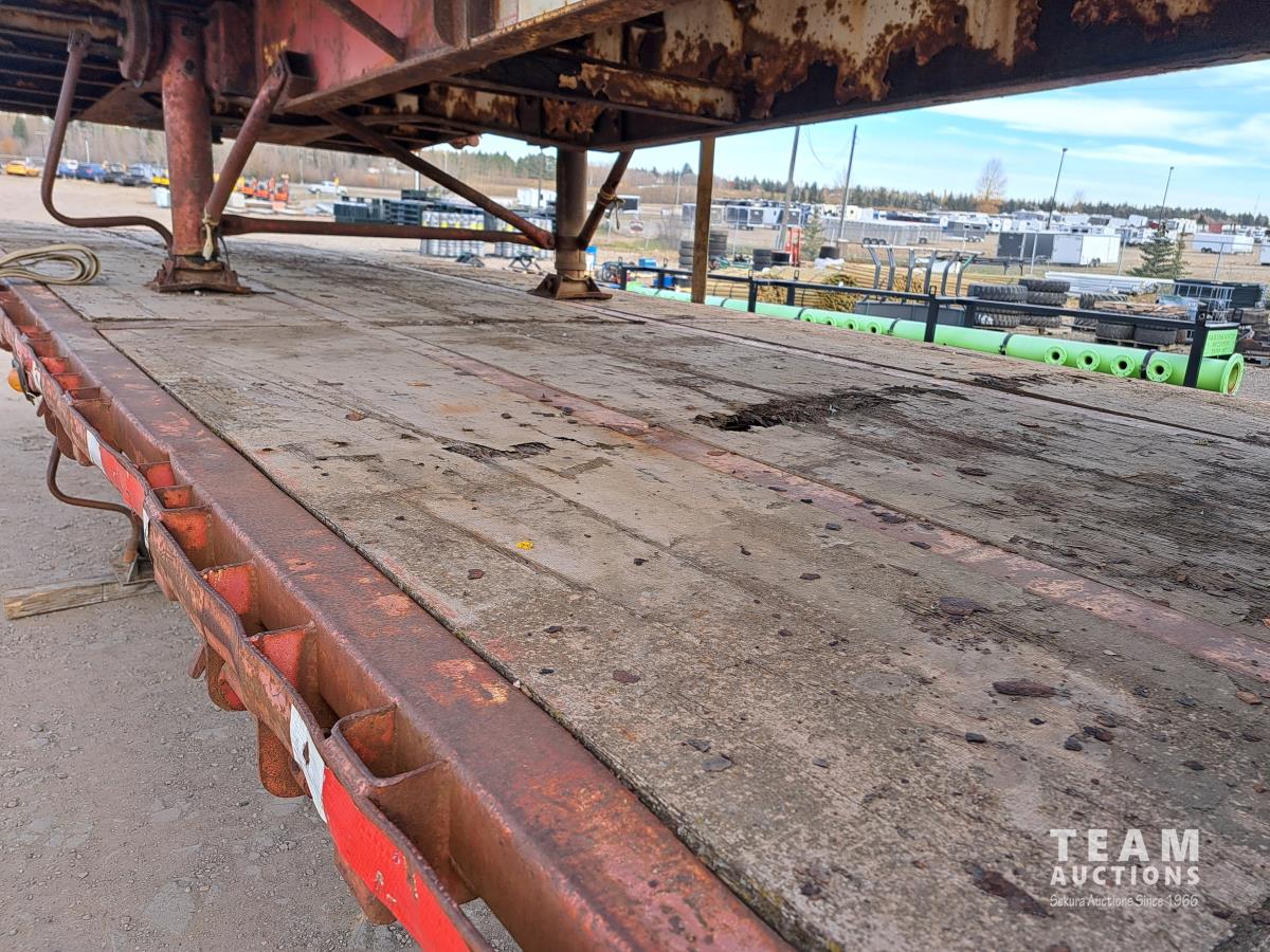 96 inch wide deck, wood deck, stake pockets, rub rails, cargo winches, tool / storage box, air brakes, Lead 32ft, Pup 28ft, steel rims, landing gear, , spring suspension, 11R22.5 tires