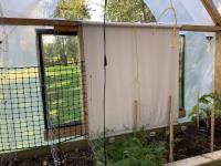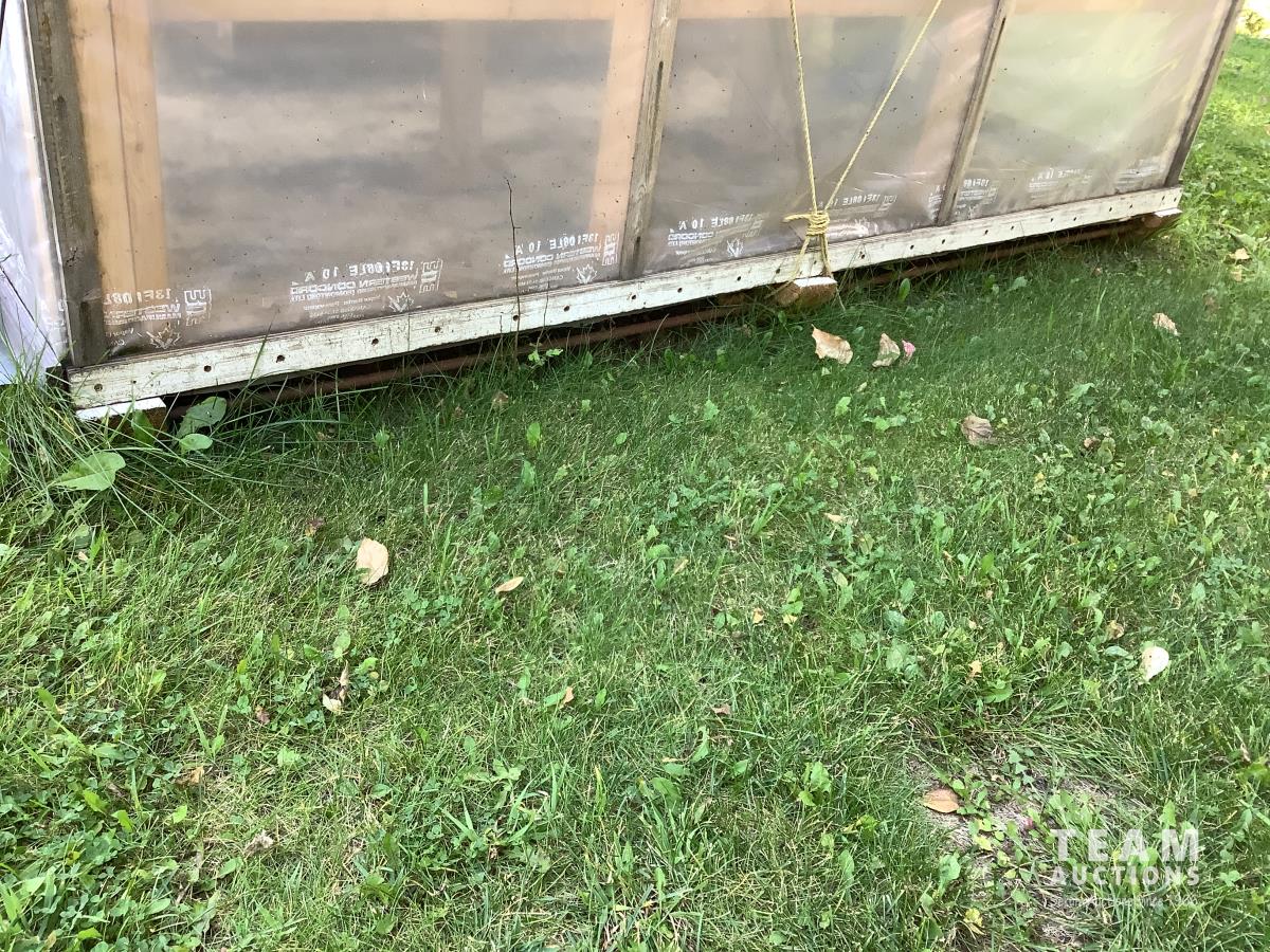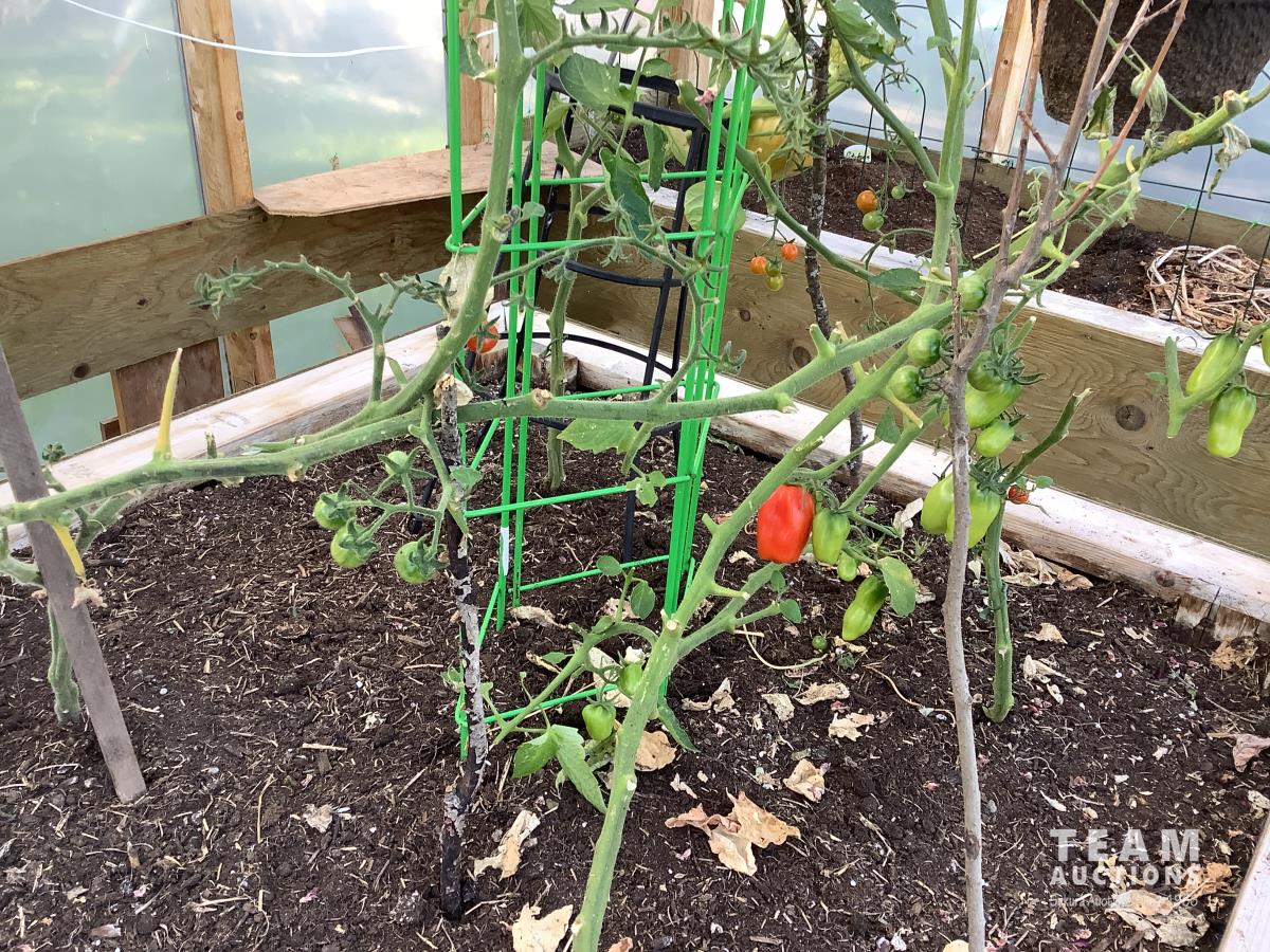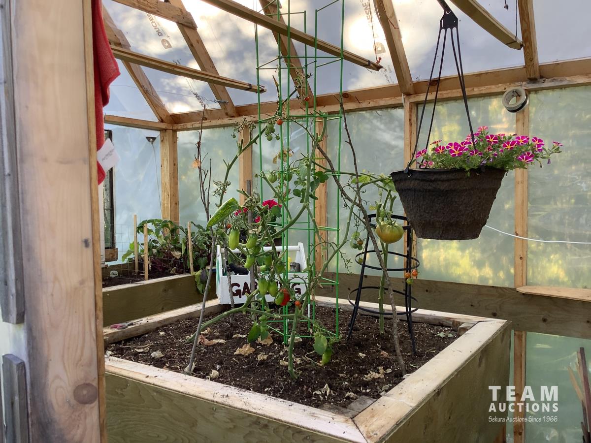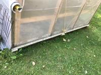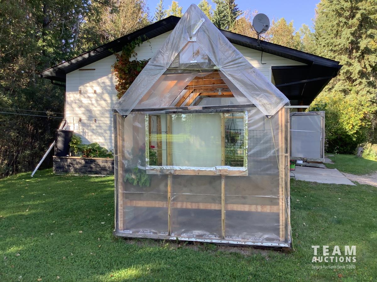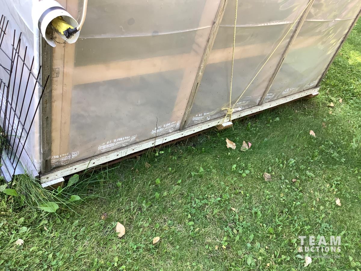 133 inch high, 3 bottom skids, wired inside with light and plug-ins, adjustable air openings, planting beds, fan