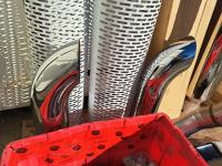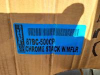 Compete package, chrome stacks new in box, stack guards, with protective plastic still on. All mounting hardware included.