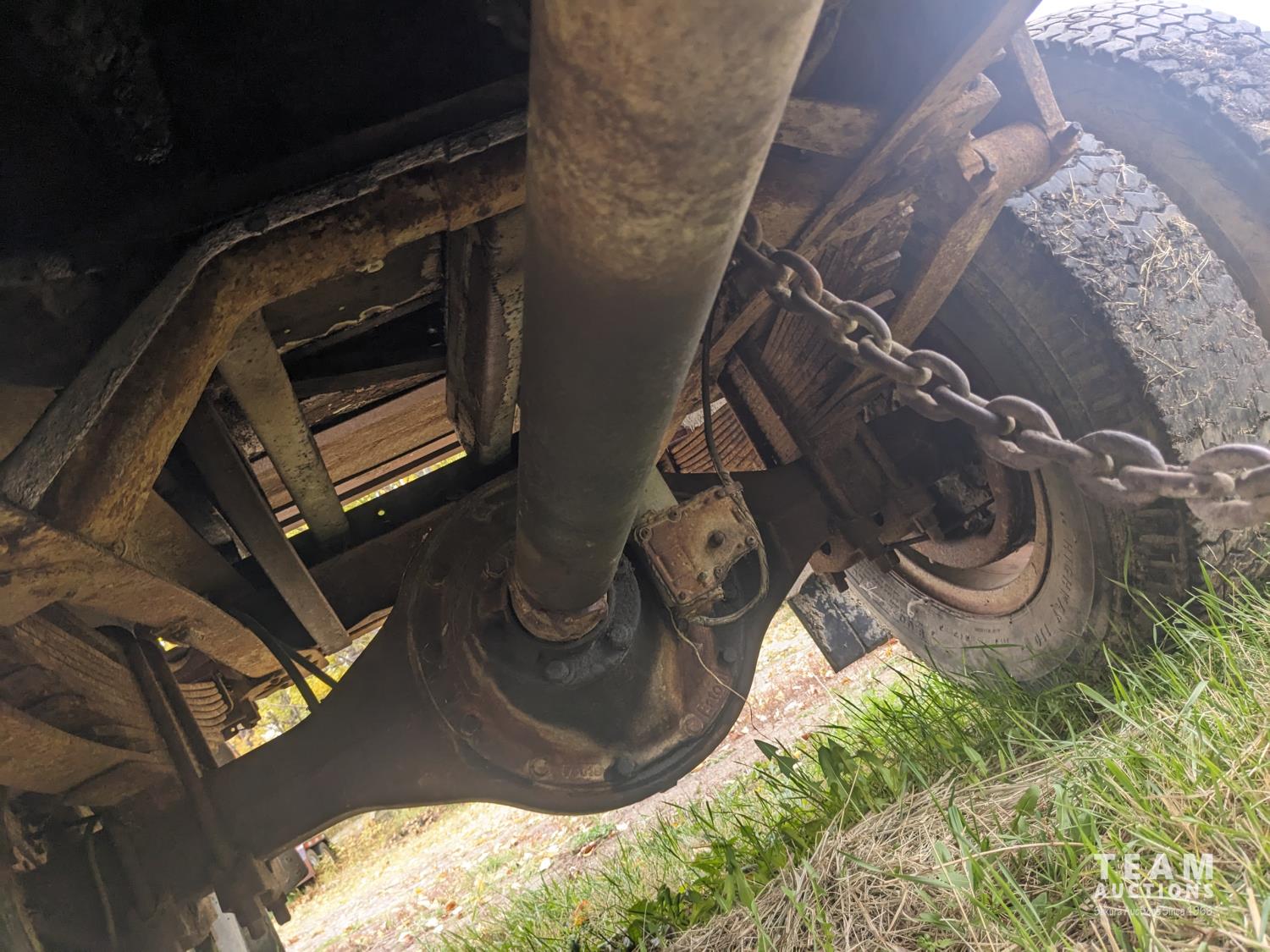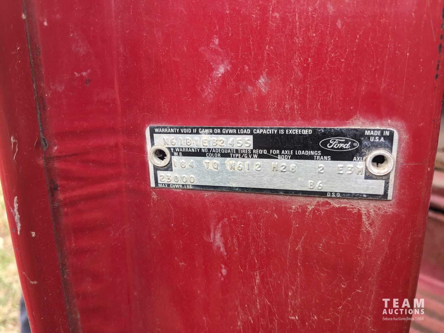 Ford 6.1 L V8 propane engine, 5X2 manual transmission, 13 ft box, hoist, spring suspension, 184 inch WB, 10.00-20 tires