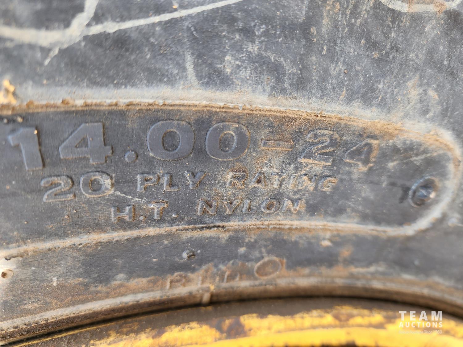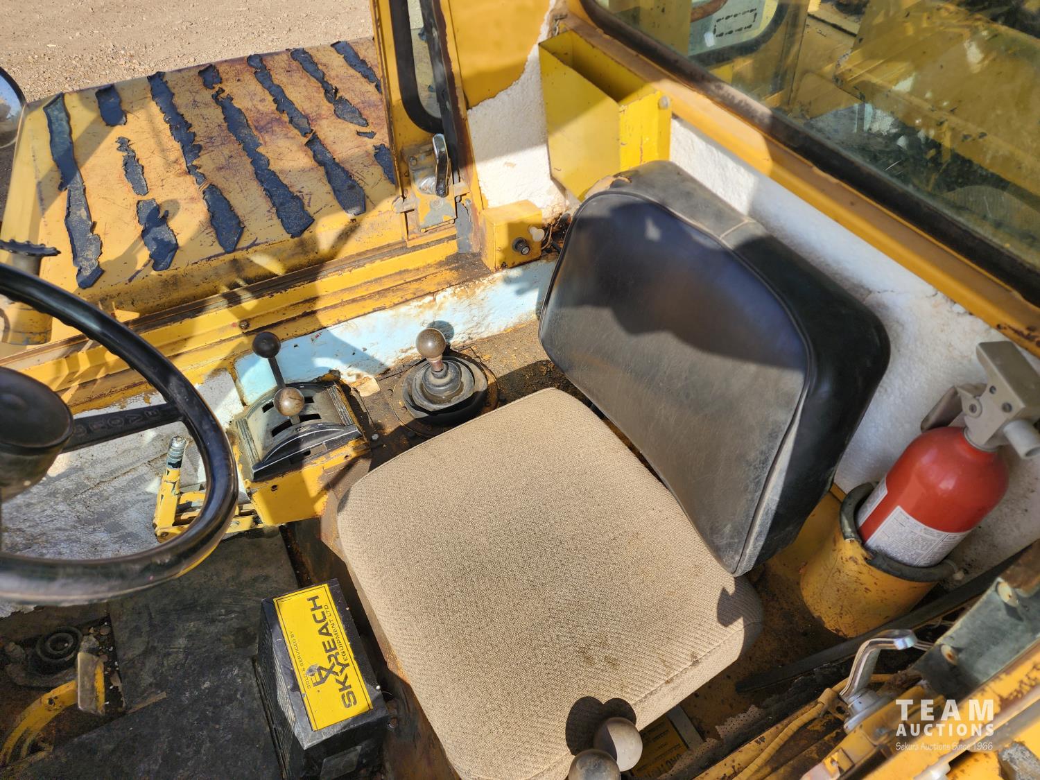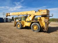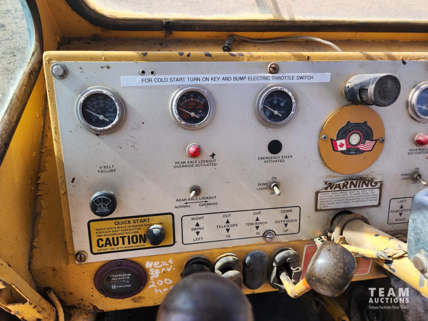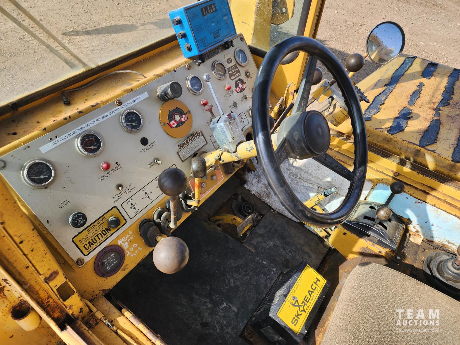 Detroit diesel engine, power shift transmission, electric throttle, 60 ft max lift height, outriggers, pintle hitch on front and rear, 14.00-24 tires