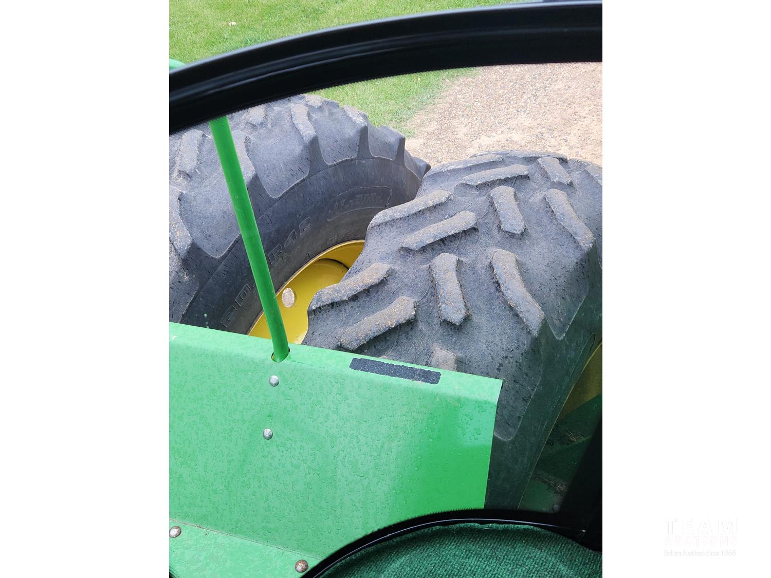 John Deere 10.1 L 6 cylinder engine, 24 speed quad range transmission, cab, A/C, radio, heat, 4 rear hydraulic outlets, 20.8X42 tires, factory duals