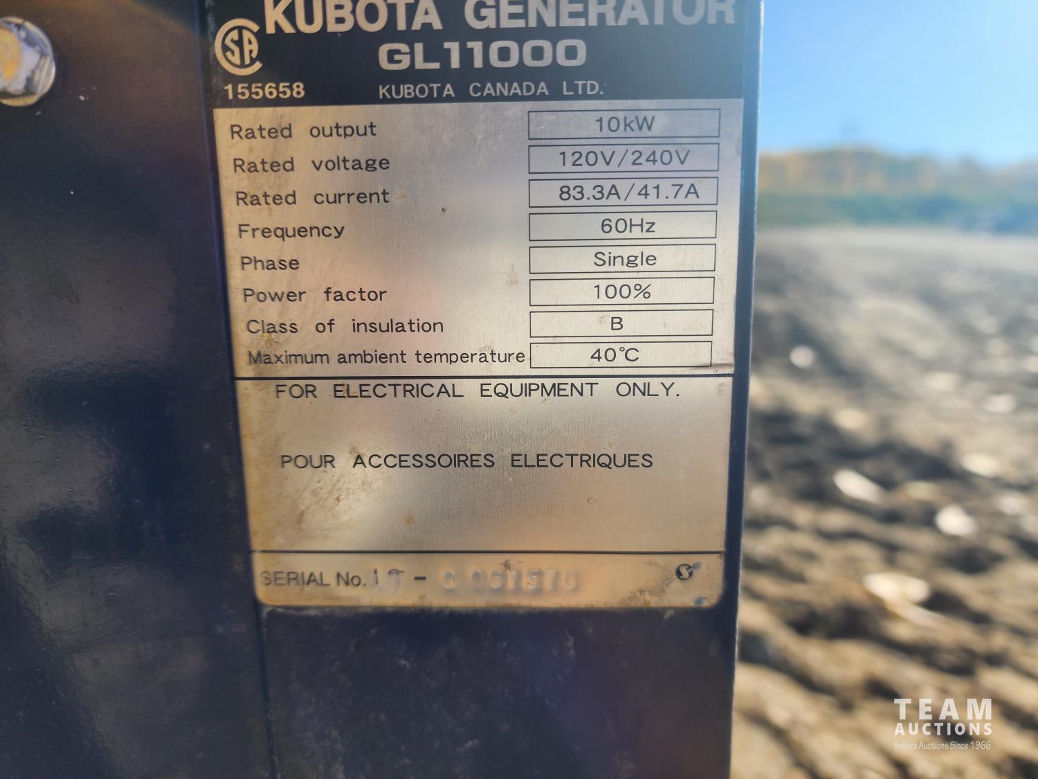 638 Kubota Lowboy II GL11000 11,000 Watt Diesel Generator