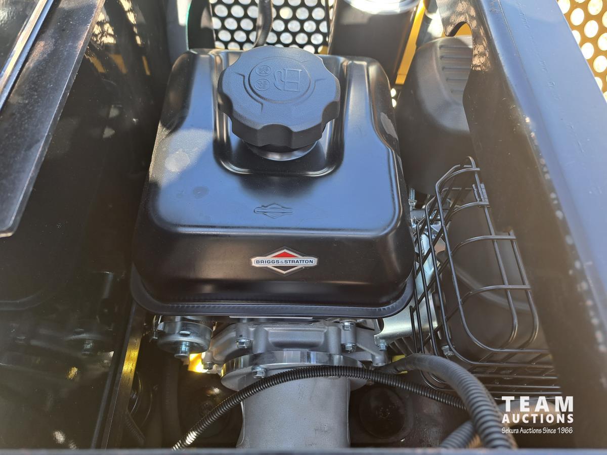 Briggs & Stratton 13.5HP gas engine, 15 inch inch bucket width, 100 kg lift capacity, auxillary hydraulic outlets, dozer blade, adjustable grapple, battery on/off switch, choke, hrs meter, joy stick controls, LED lights, 65 inch maximum digging depth, 94.5 inch maximum digging height, 118 inch maximum digging distance, minimum rotation radius 63.2 inch, maximum angle of climb 30 deg, maximum load height 65.7 inch