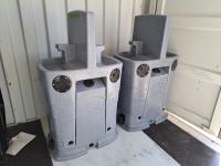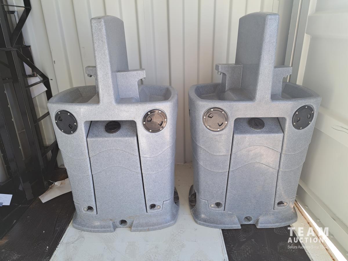 Fresh water tank, grey water tank, fill and drain outlets, as well as clean out outlets, foot pump. Sold in lots of 2.