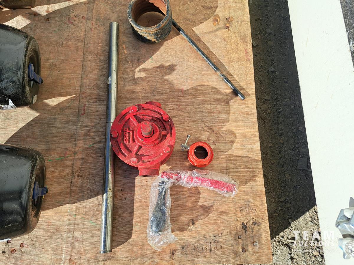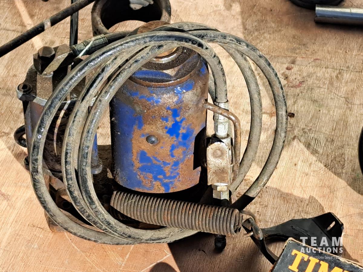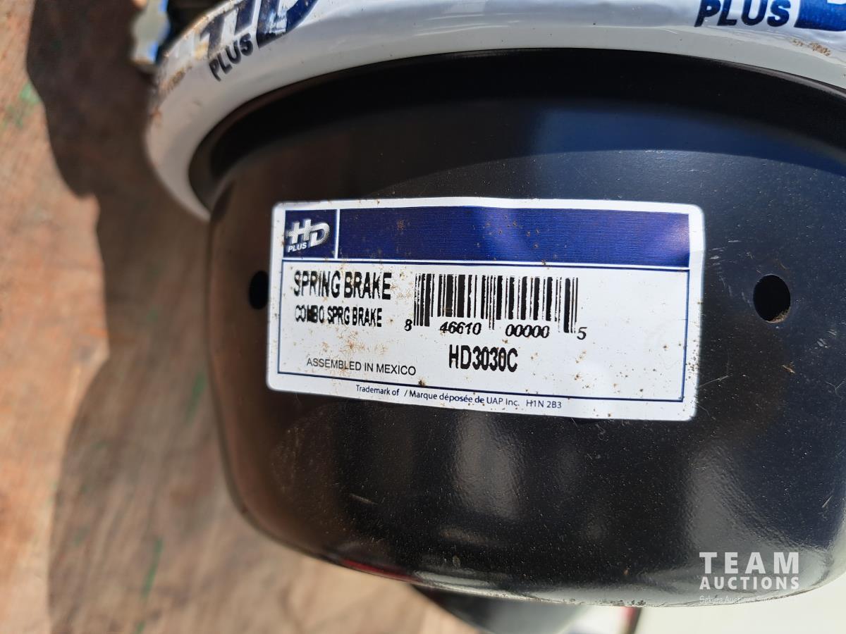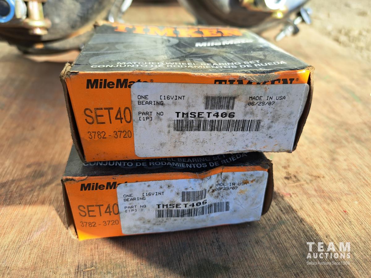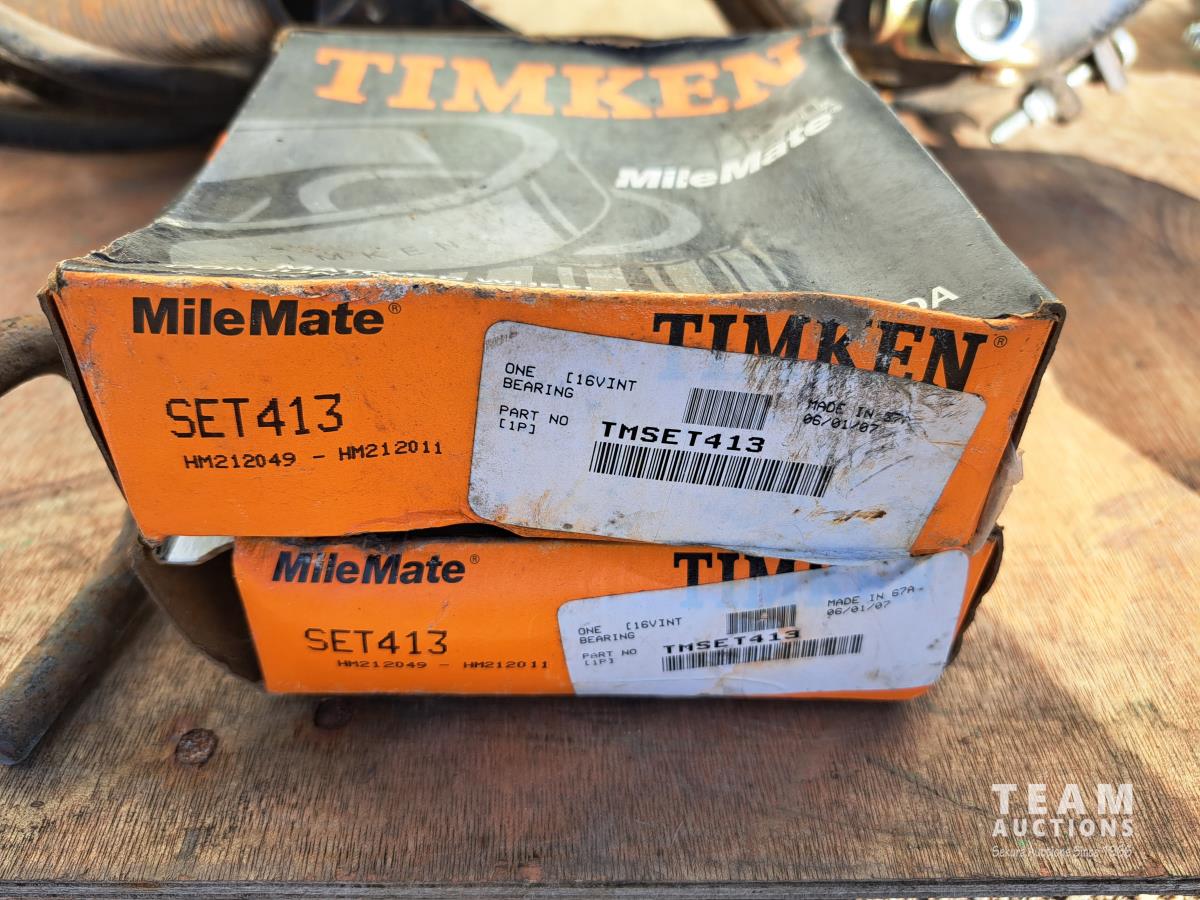 2 unused Spring Brake pods, HD330C, 1 hand crank barrel pump, 1 hydraulic bottle jack (size unknown), 4 boxes of Timkin matched wheel bearing sets, 5 truck box roll tarp springs