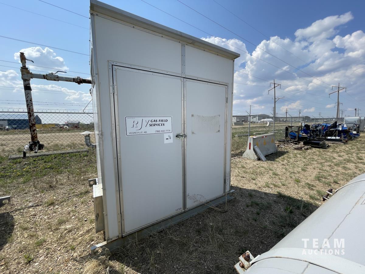Skid dimensions 7 ft wide / 8 ft long / 8 ft high Building dimensions 4 ft wide / 7 ft long / 7 ft high, Double wall Westeel mounted tank, Chemical injectors and meters