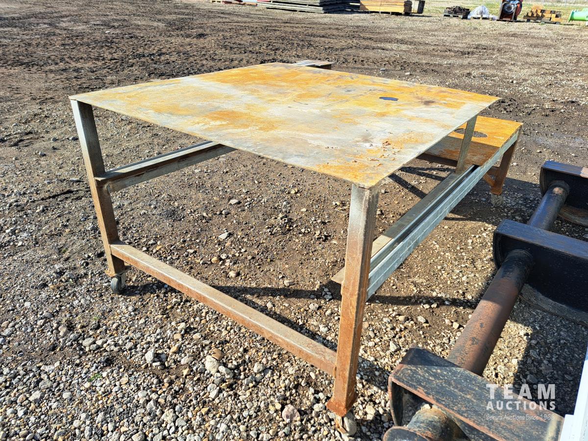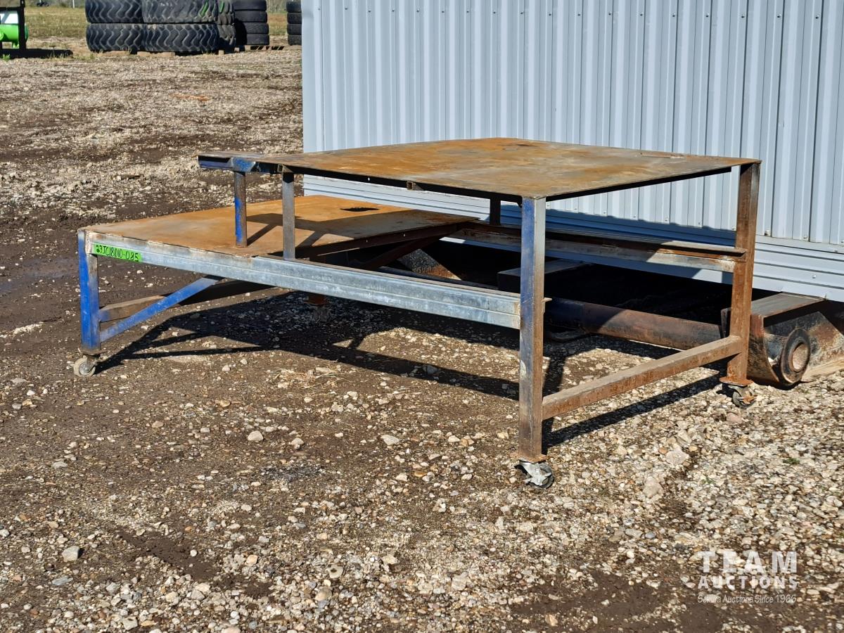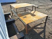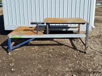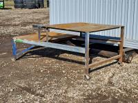 Top tier is 4 ft x 49 inch, bottom tier is 4 ft x 3 ft, 7 inch x 7 inch vise mount plate, 7 ft overall length