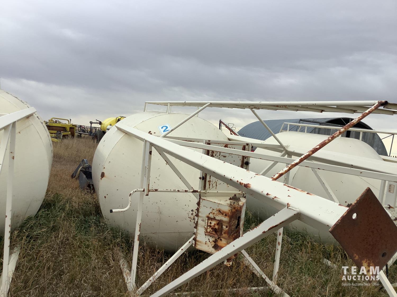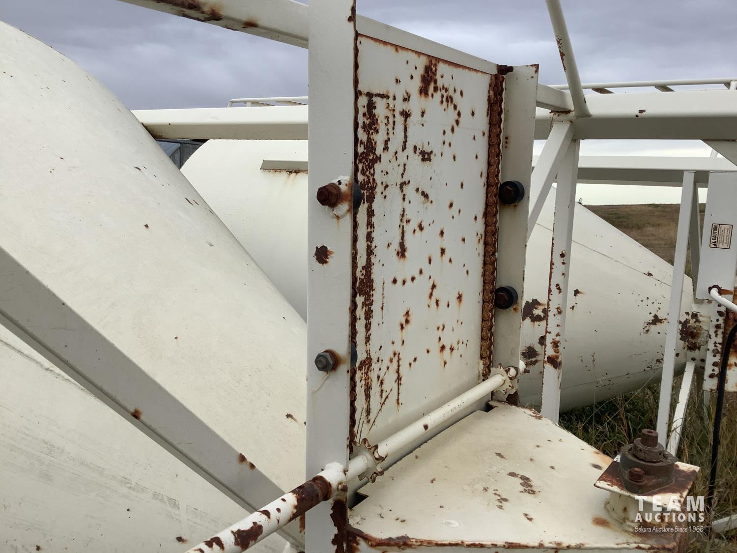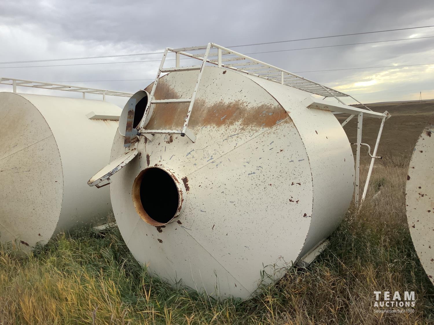 These bins were set up as feed bins at a hog barn. All you need to do is remove the bottom auger distributer and you will have a regular bin. Seller will load on trailer for buyer. Bin has #2 on it.