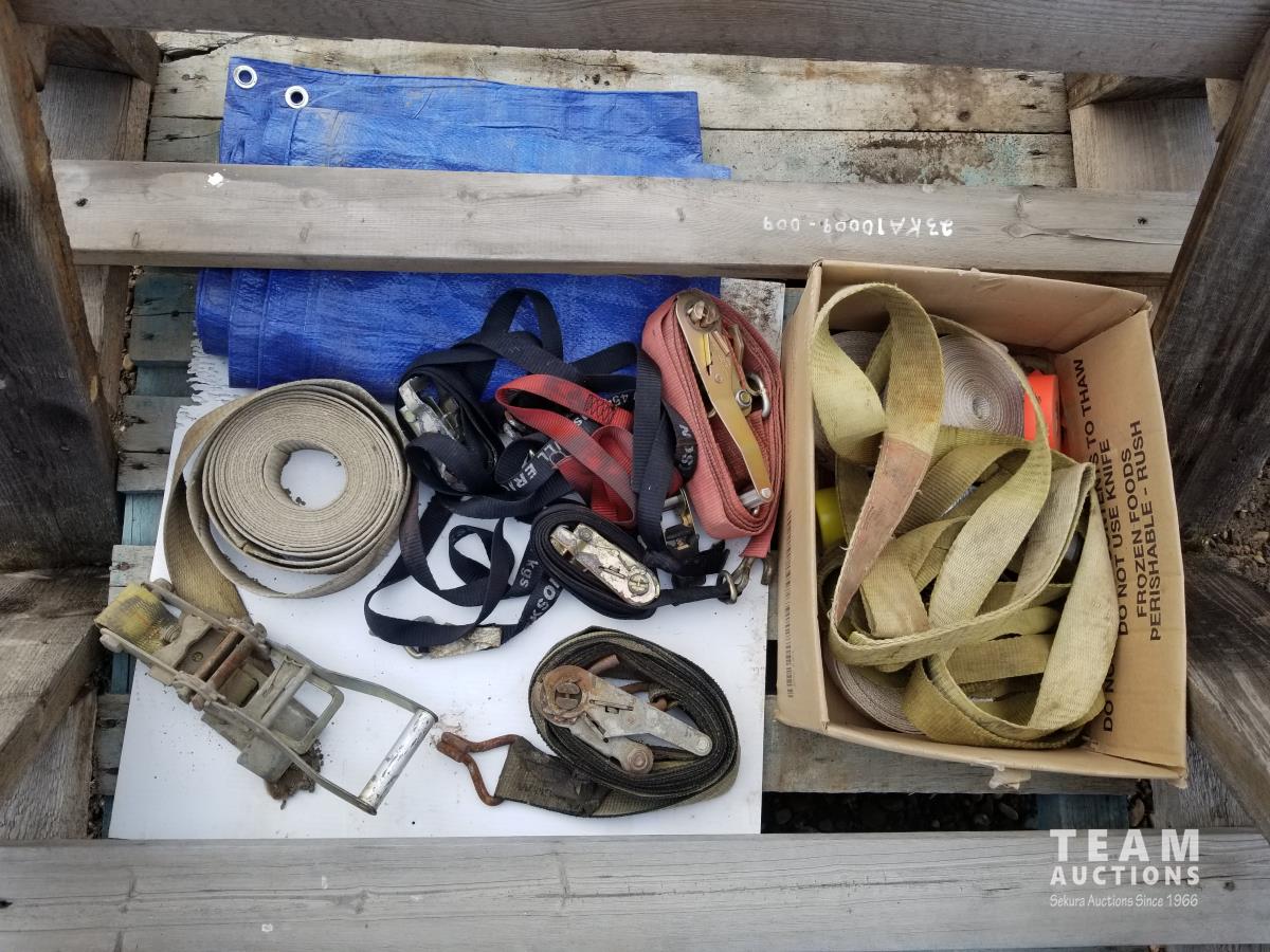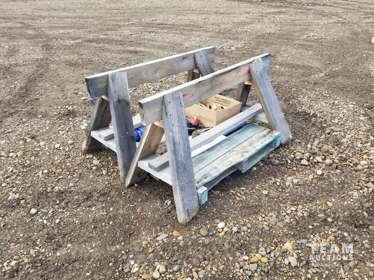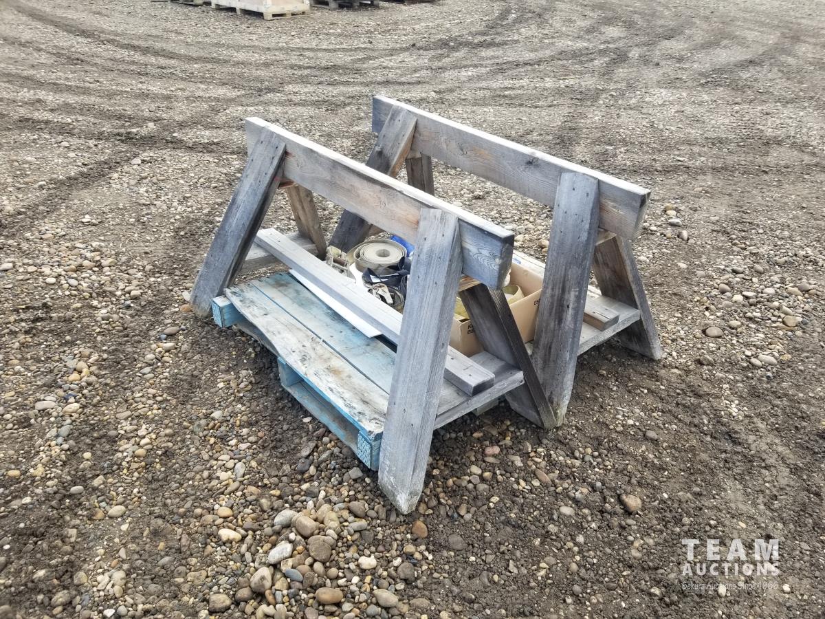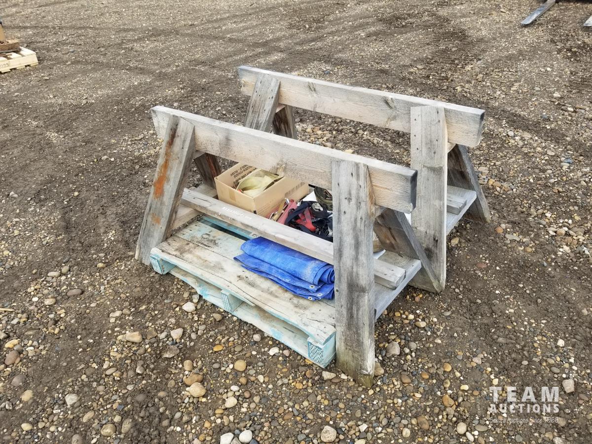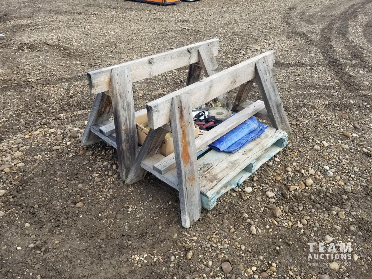 33 (2) Wooden Saw Horses and Misc Ratchet Straps