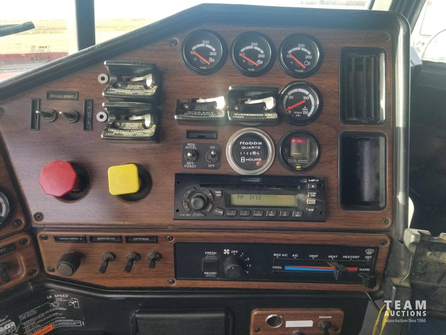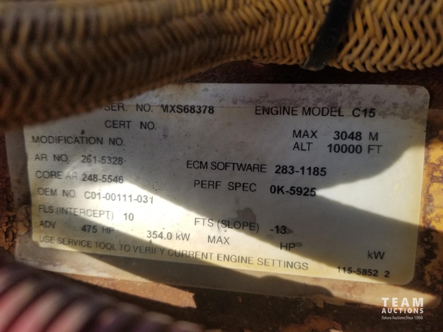 Caterpillar 475 ACCERT TWIN TURBO 6 cylinder 475 HP diesel engine, engine brake, engine block heater, Eaton Fuller 18 speed manual transmission, flat top 28 inch sleeper, A/C, cruise control, leather interior, radio, PTO System hydraulic wet kit, 13,000 lb front axle, 40,000 lb rear axles, 3 way diff locks, 212 inch WB, spring and air ride suspension, all aluminum wheels, 11R24.5 tires