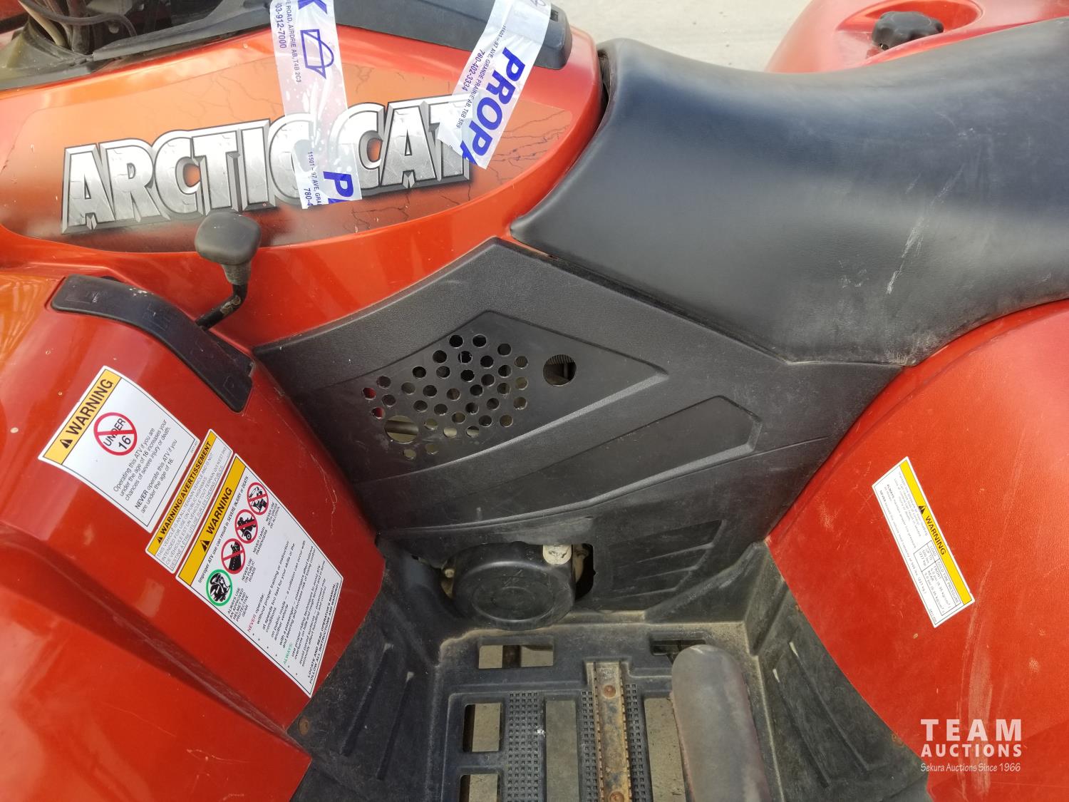 automatic transmission, Arctic Cat 2500 lb winch, 50 inch blade, speed rack, 26x10-12 Front tires, 26x12-12 rear tires