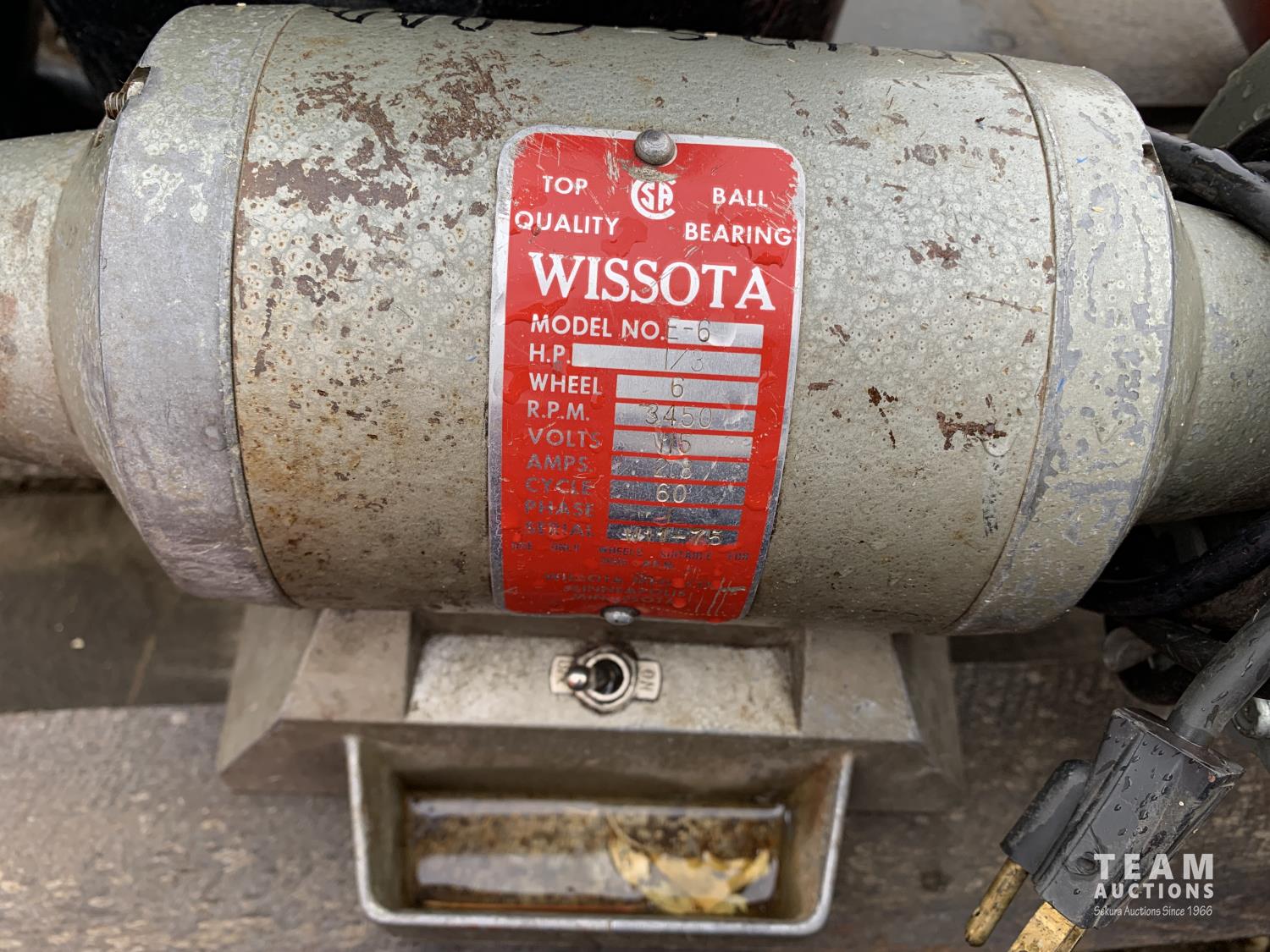 10 gallon portable air tank, 1/2 HP electric motor, Wissota 1/3 HP grinder, Supreme 5W-30 oil and other oils, ratchet straps, wrenches and miscellaneous