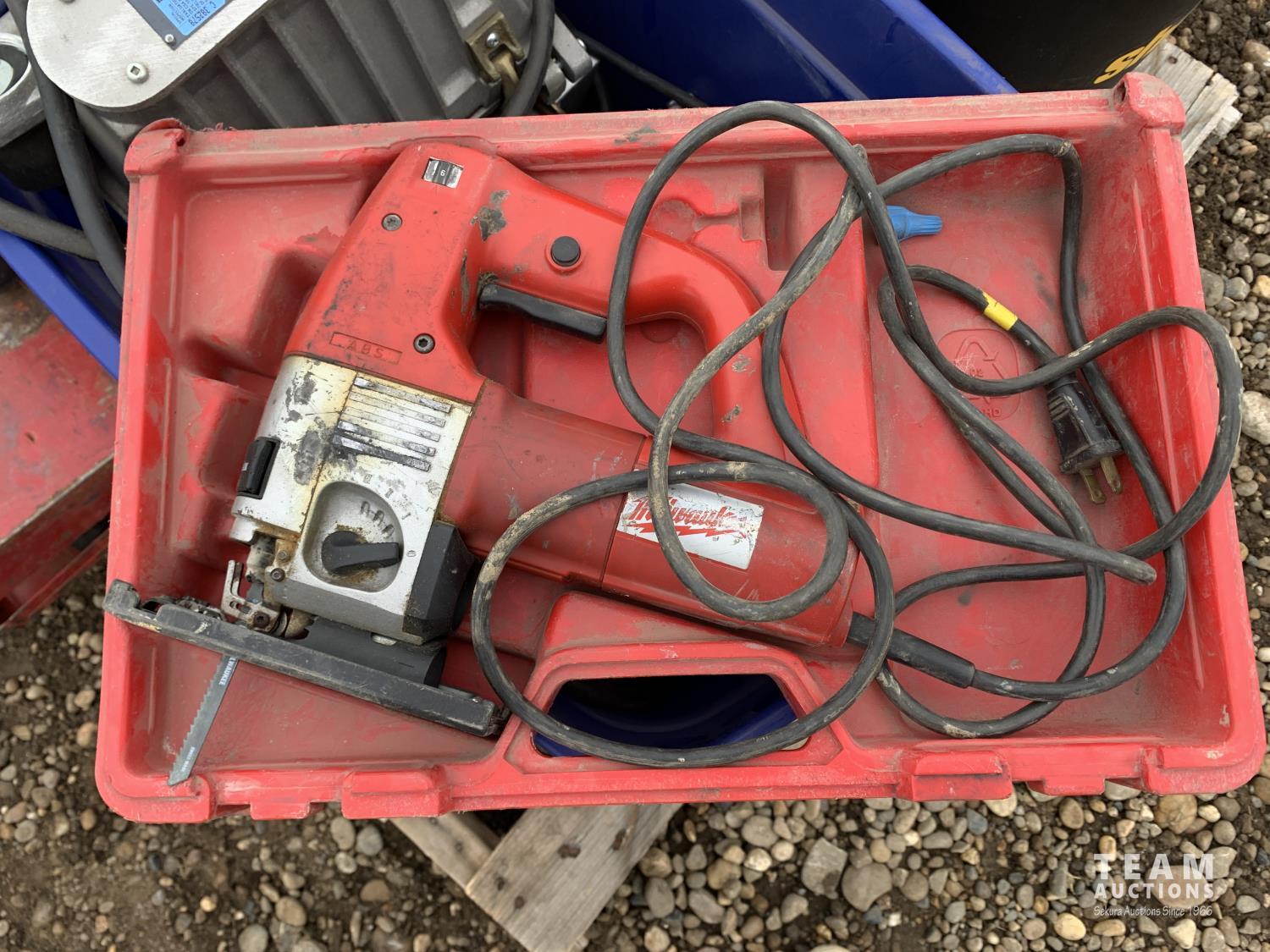 10 gallon shop vac, Porter Cable tiger saw, Wagner paint spray gun, Milwaukee jig saw, outdoor lights, Lenmer paint spray gun, Skil-Saw 7-1/4 inch circular saw