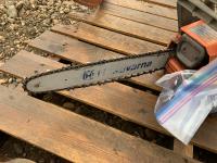 chain saw has spare chain and trimmer has extra parts