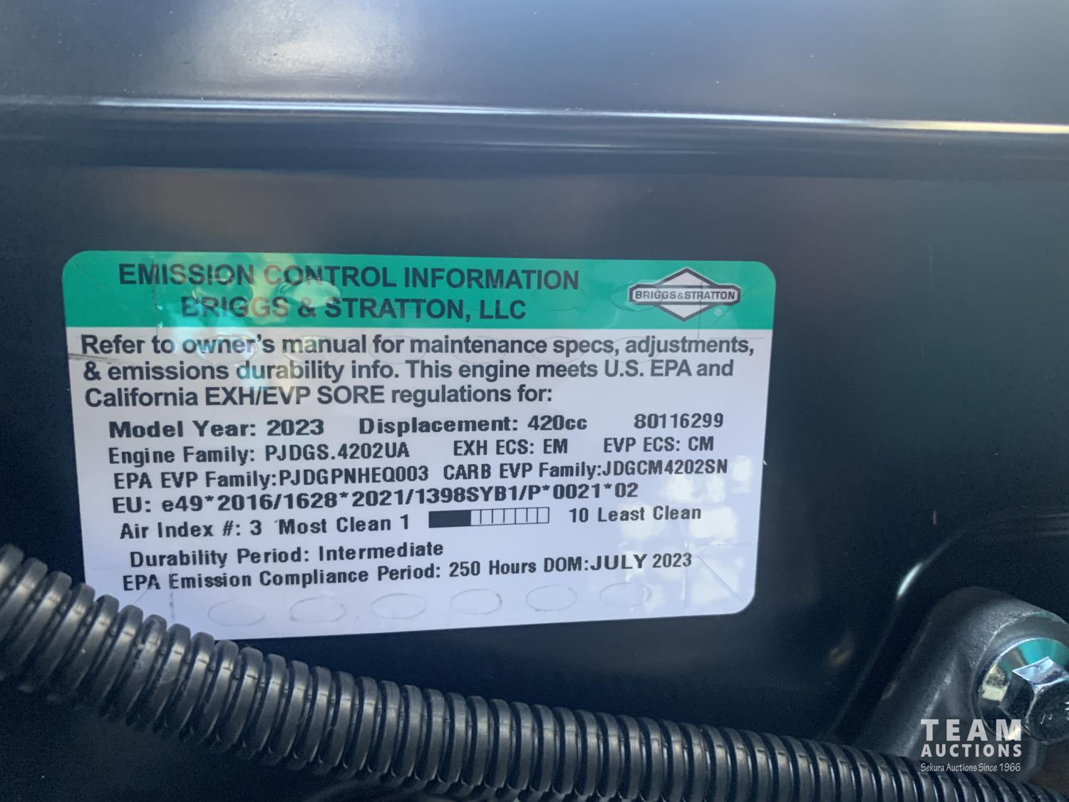 Briggs & Stratton 13.5 HP engine, 3 ft front blade, 14 inch dig bucket, 7 inch wide rubber track, 32 inch stick, aux hydraulic