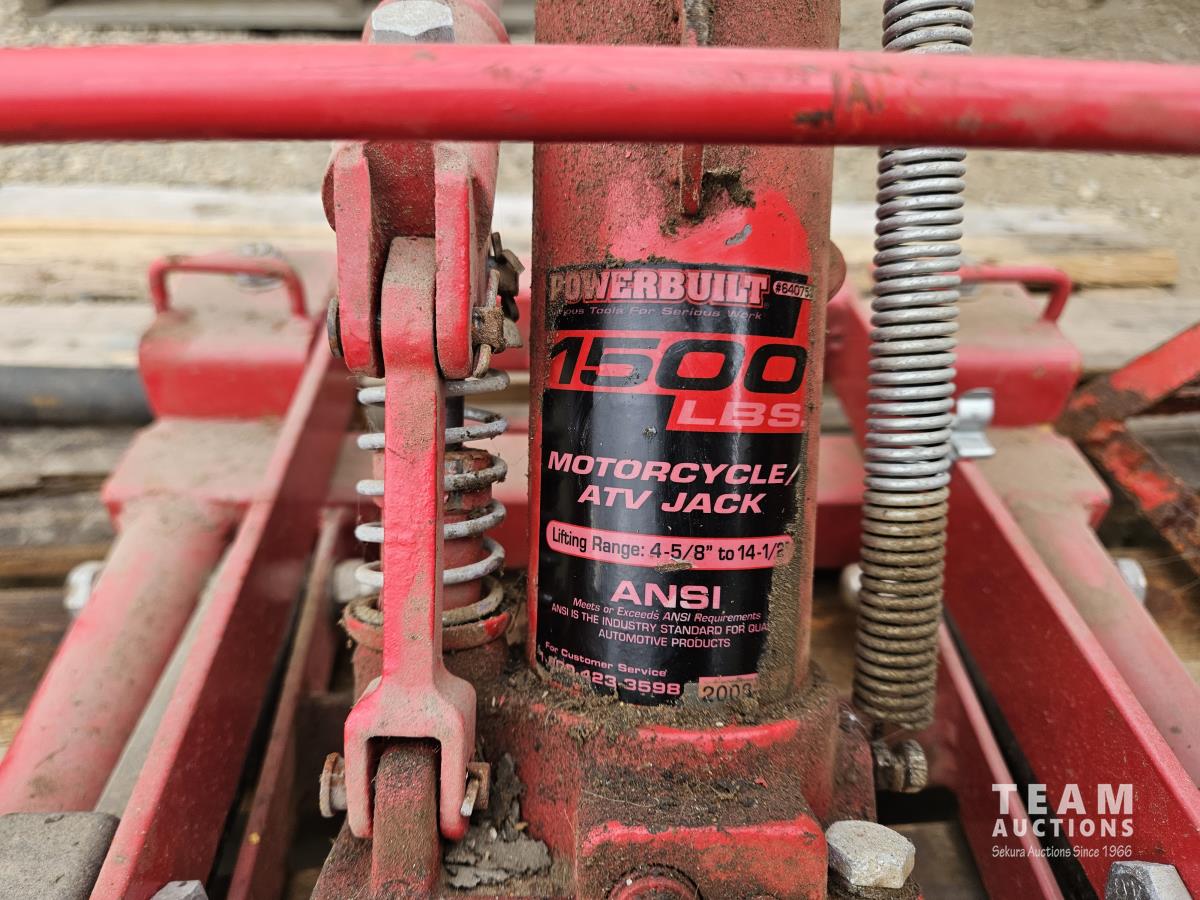 35 Powerbuilt 1500 lb Motorcycle/ATV Jack and (2) Jack Stands
