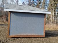 8-1/2 ft high, shingles, wood floor