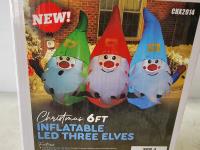 1636 Christmas 6 Ft LED Three Elves Inflatable (Unused)