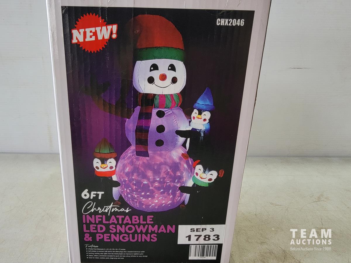 1641 Christmas 6 Ft Snowman and Penguins Inflatable (Unused)