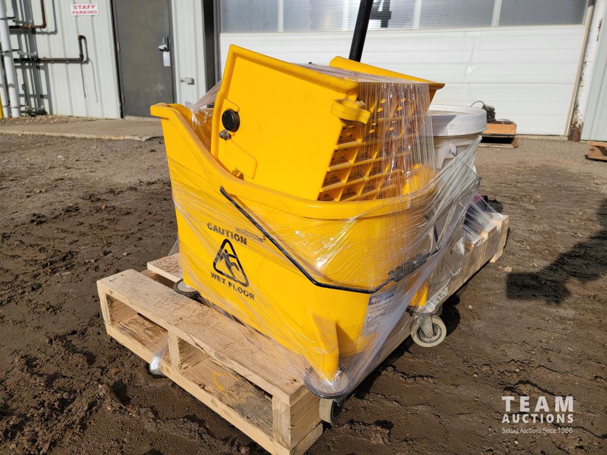 1159 Mop Pail, (2) Pails Formula 2000 Wax Stripper, Spray Bottles and Wire Brushes