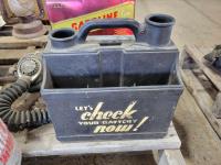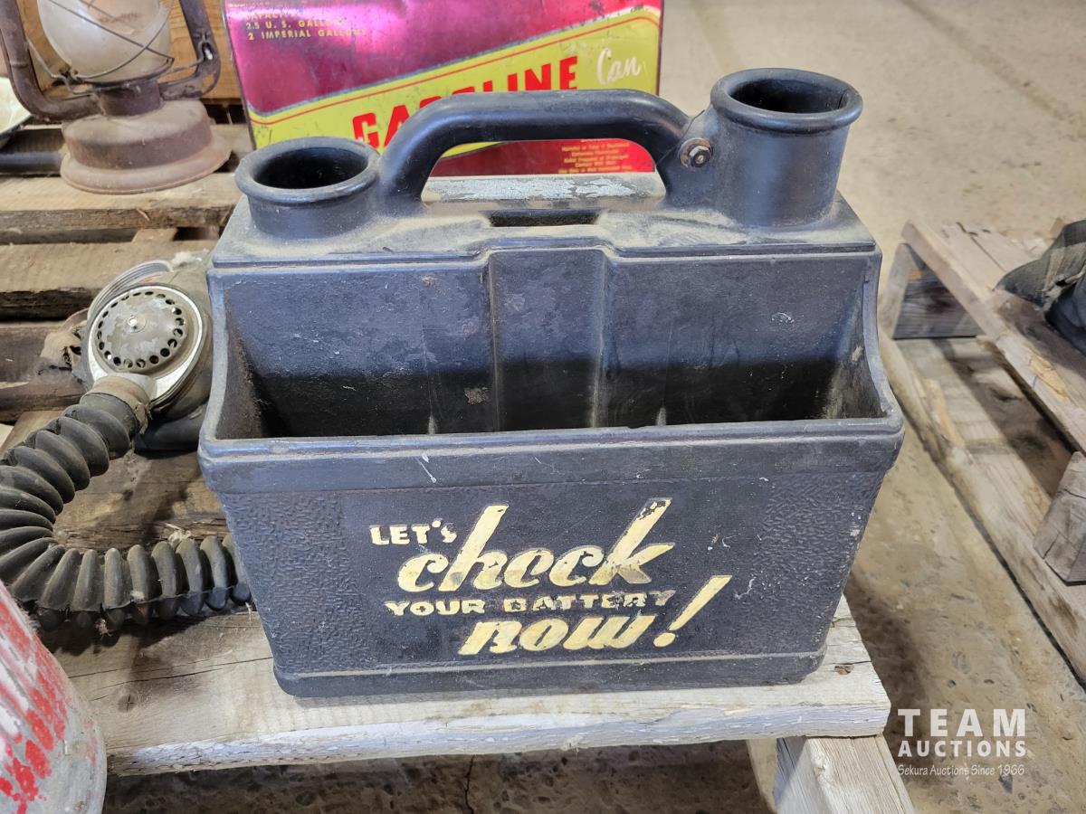 Gas cans, gas mask, lunch box, battery tender, lantern