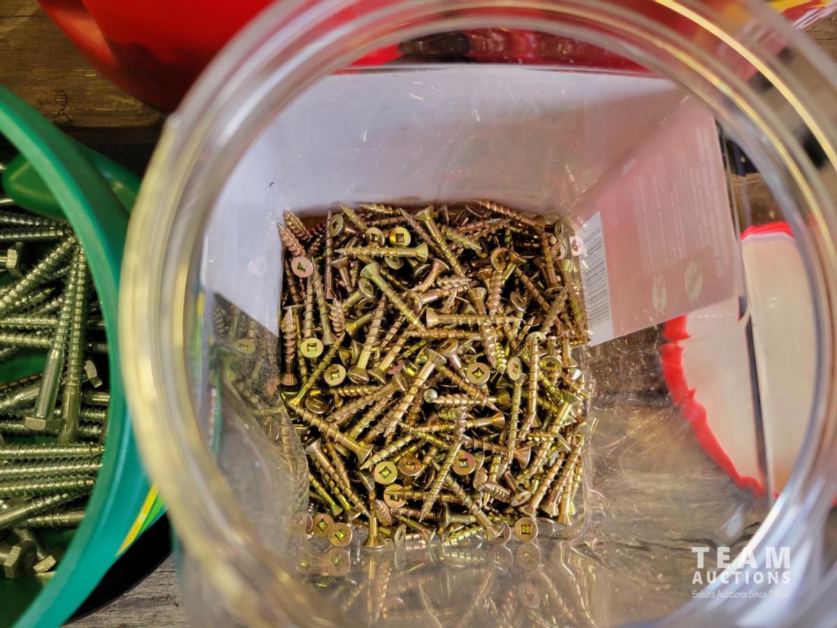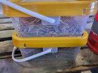 Nails, 2-1/2 inch construction screws, 3 inch construction screws, hex lag screws