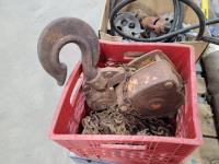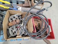 Tristar vacuum, clothes line reels, tiger torch, qty of pipe fittings, ball hitch, grippler and control box