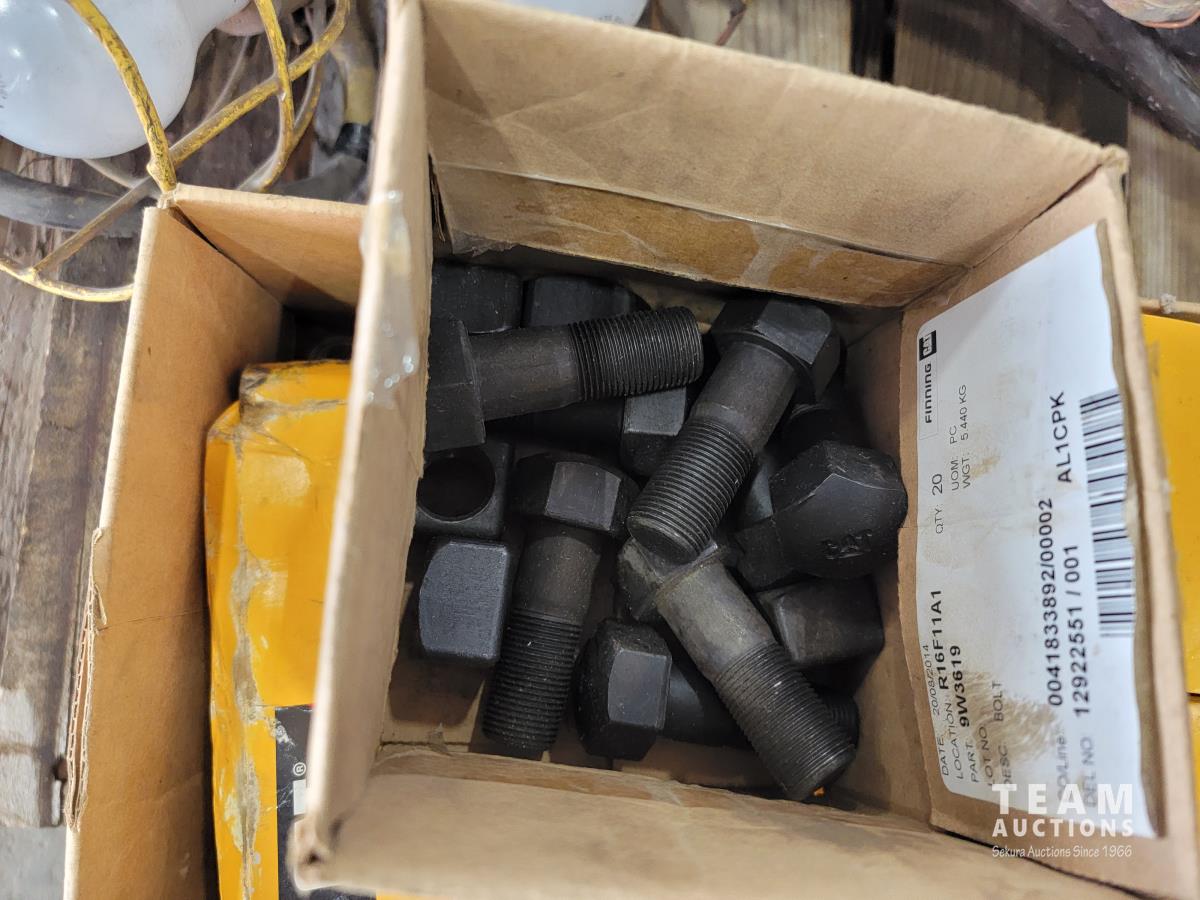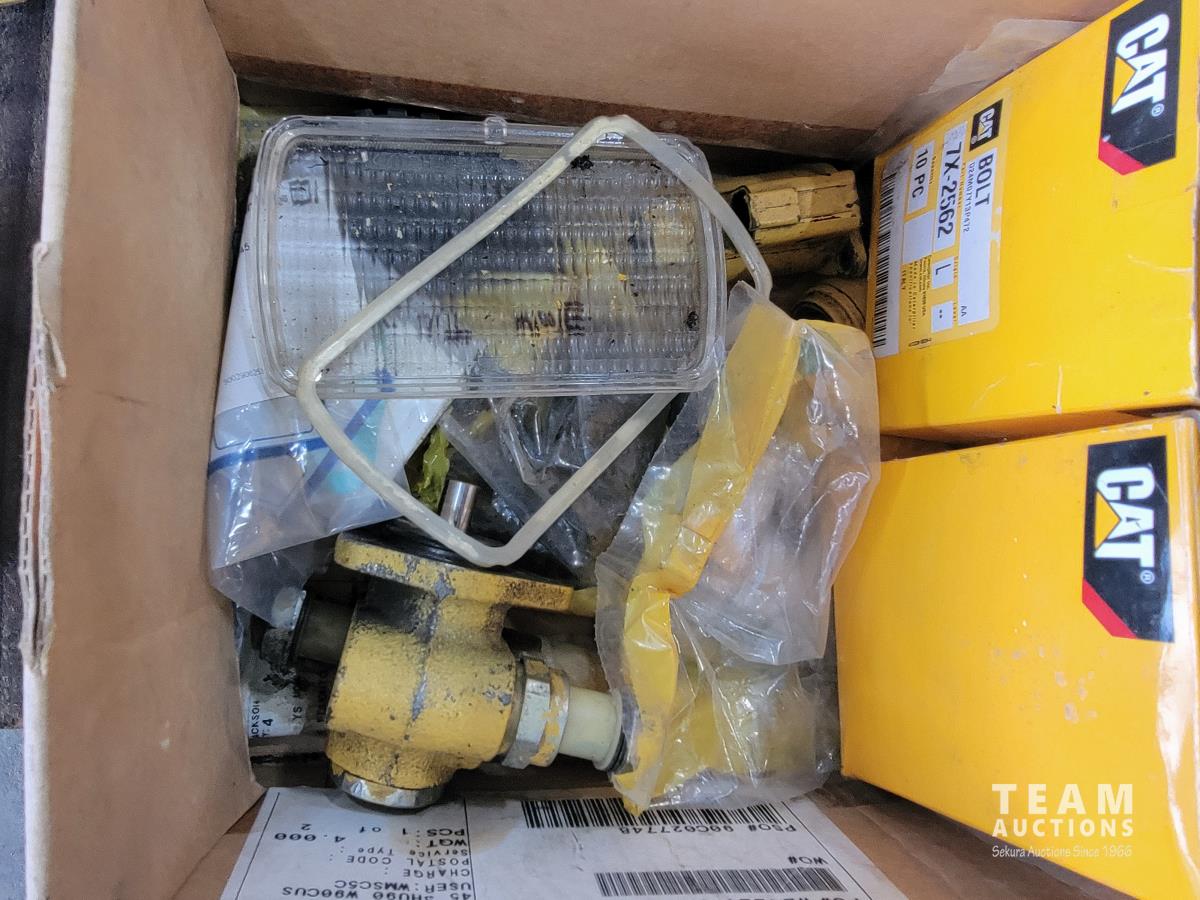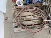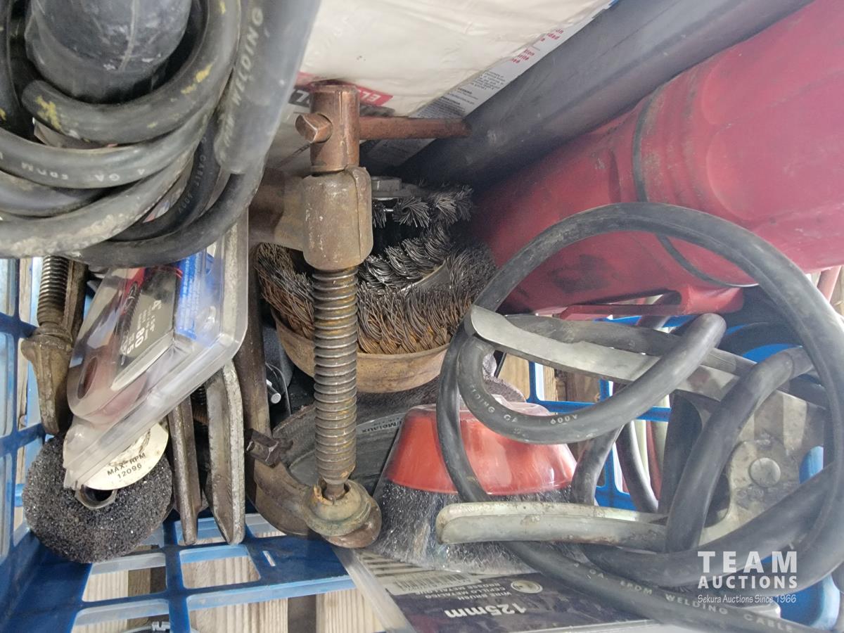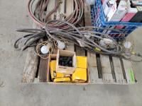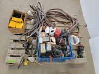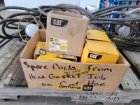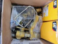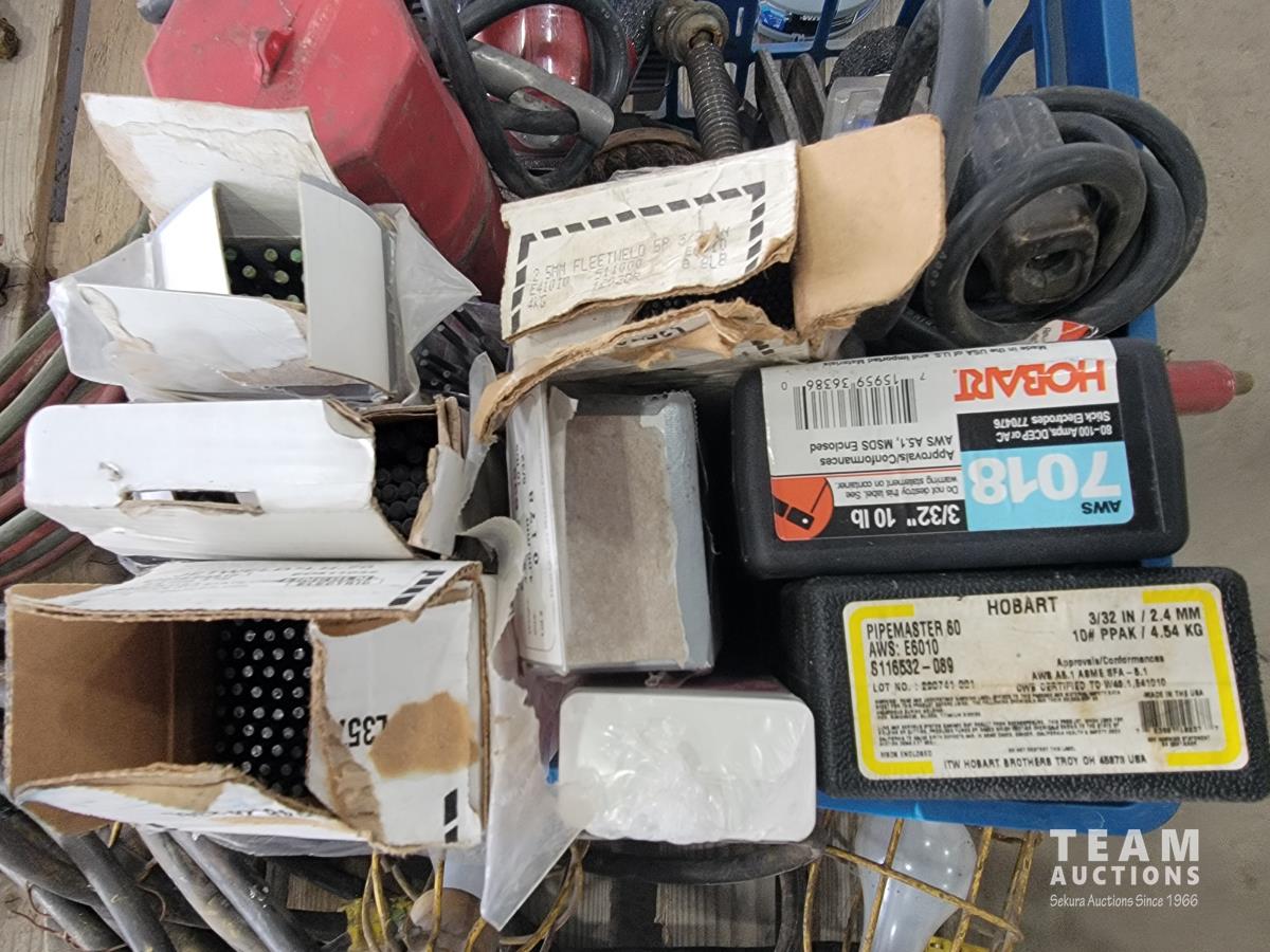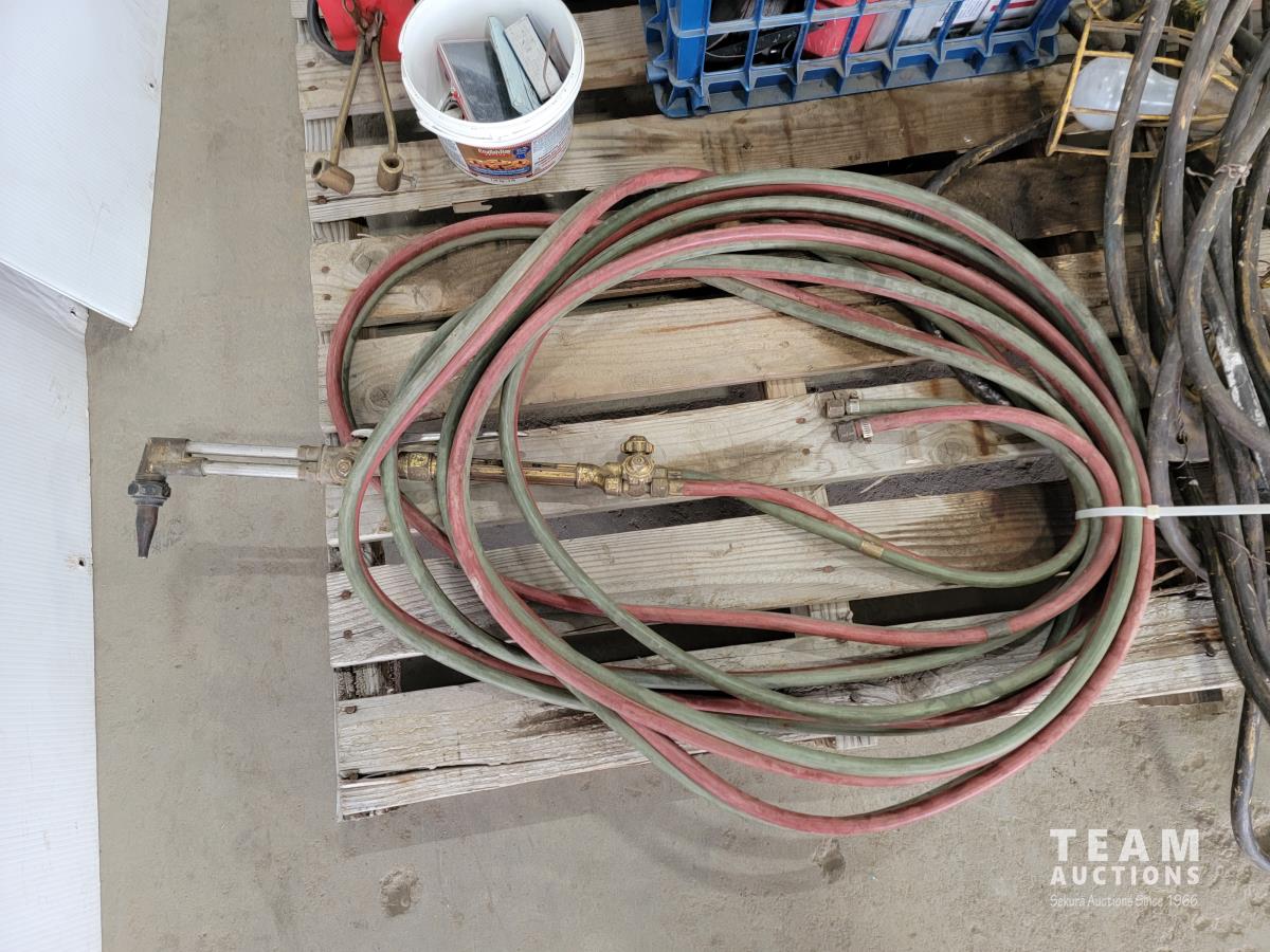 Torch and hose, work lights, qty of welding rods, wire wheels and box of spare parts from head gasket job on CAT hoe