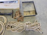 Paint rollers, paint roller tray, small bottle jack, length of rope, chain
