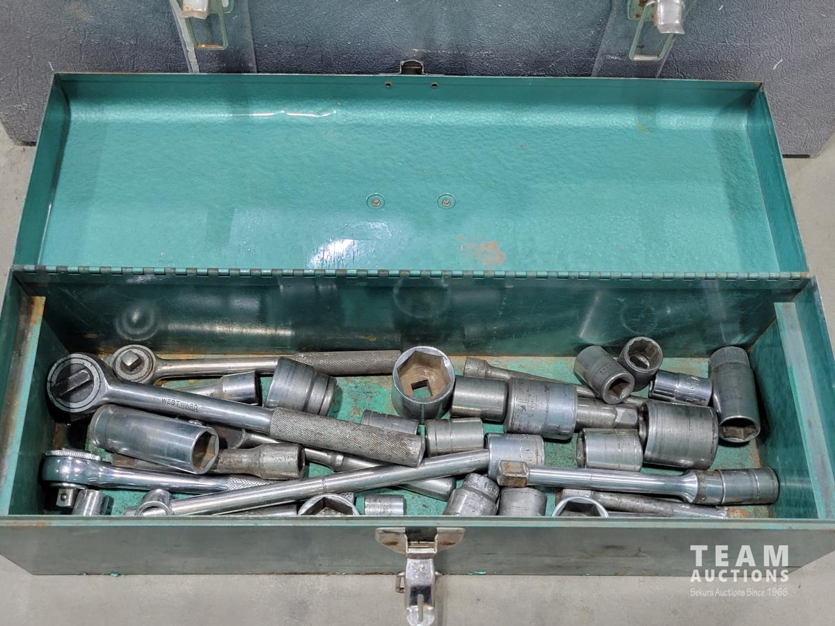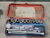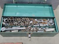 1/2 inch drive sockets, 3/8 inch drive sockets, wire stripper, various tools