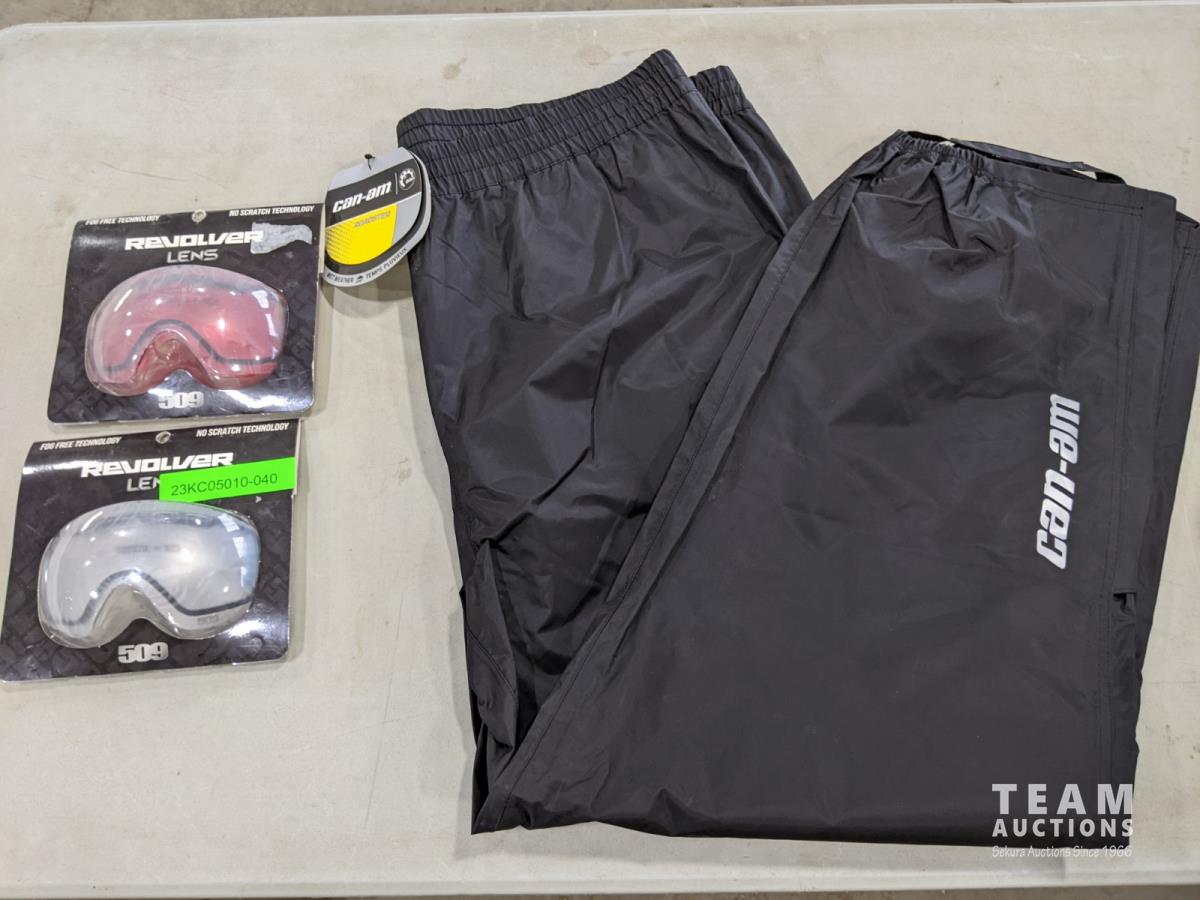 1259 Can-Am Roadster Rain Pants Size 3XL and (2) Revolver Lenses (Unused)