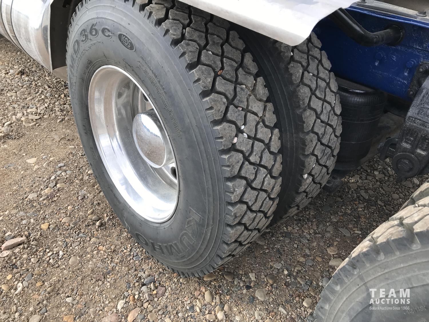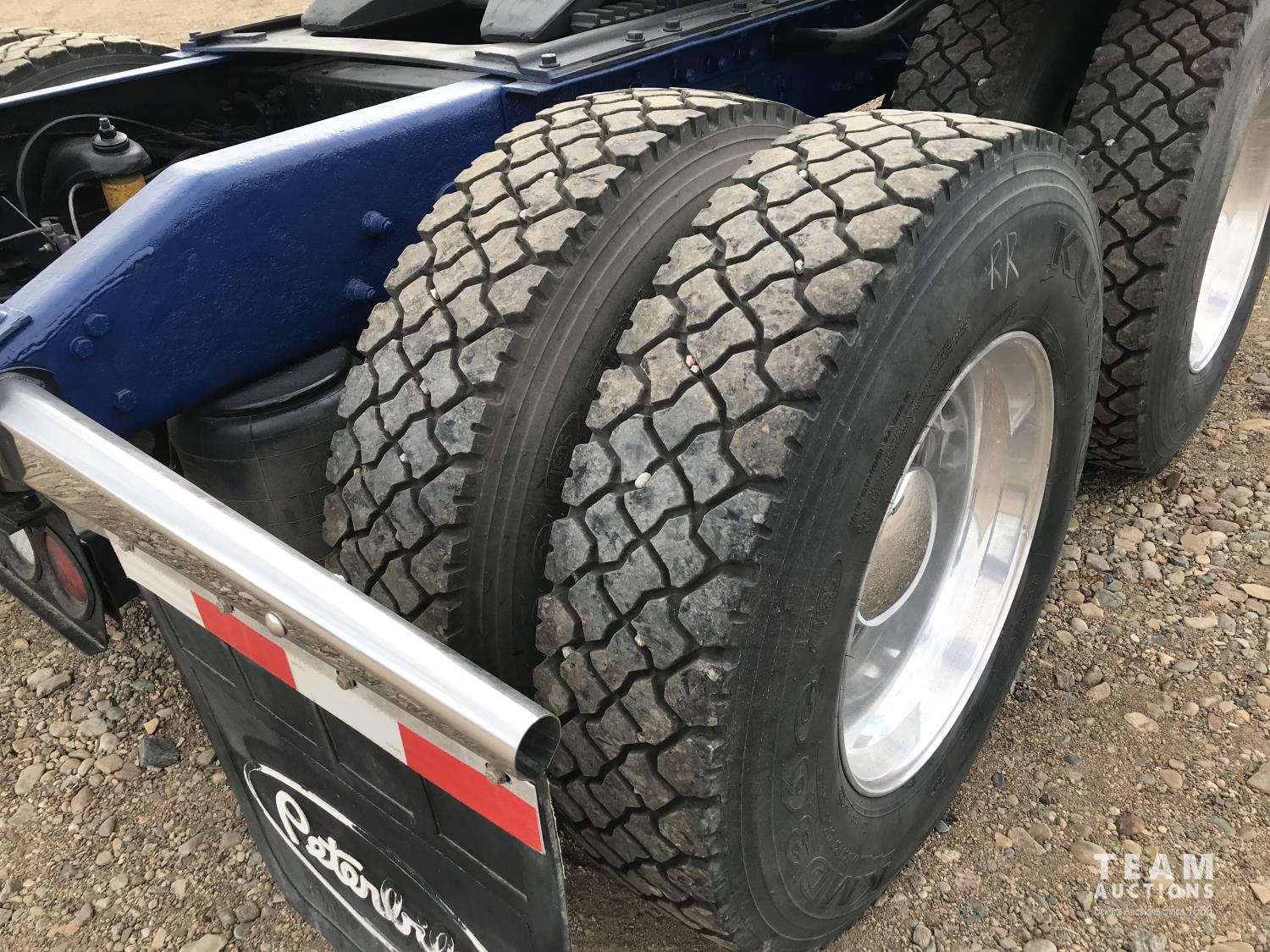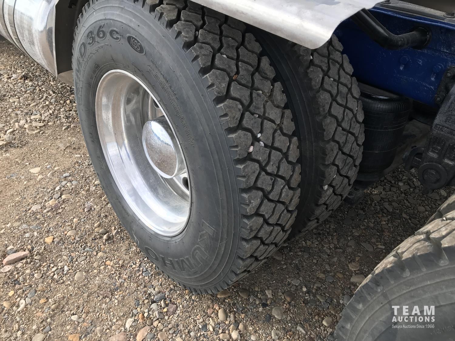 Caterpillar 3406E 14.6 L 550 HP d engine, Webasto engine heater, engine brake, Eaton Fuller 18 speed manual transmission, 60 inch sleeper, fridge, A/C, cruise control, leather interior, air ride driver seat, stereo, air ride suspension, 12,000 lb front axle, 40,000 lb rear axles, diff lock, 3.70 ratio, 244 inch WB, all aluminum wheels, 11R22.5 front tires