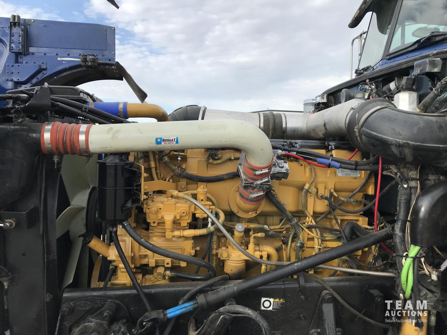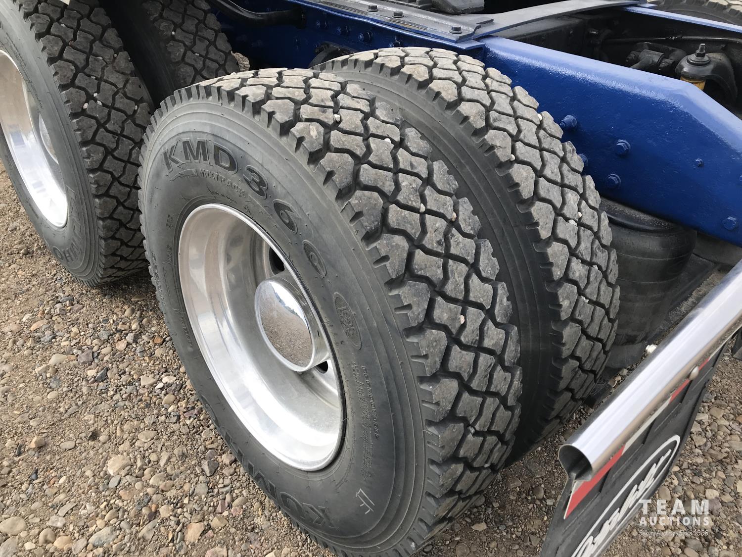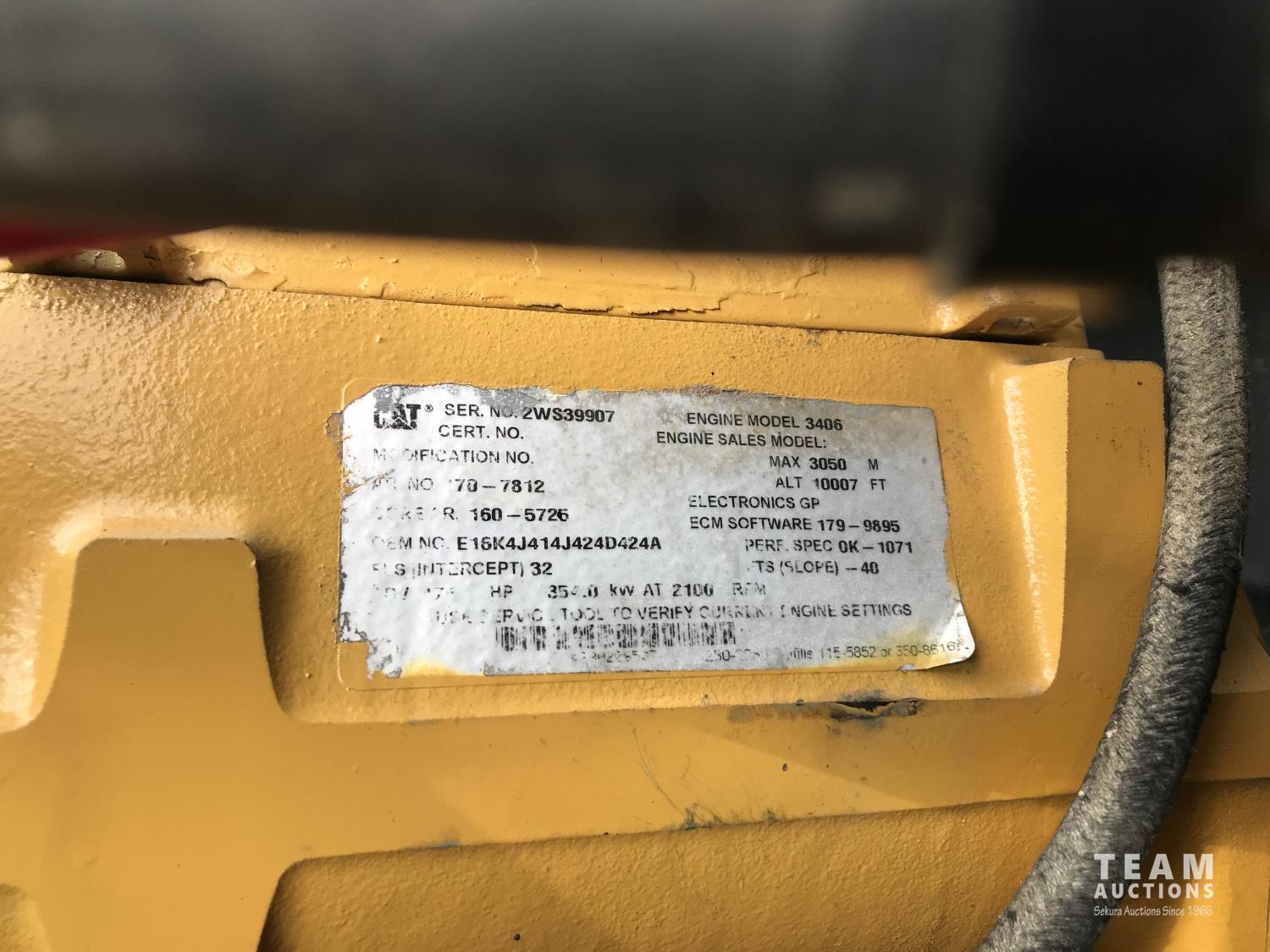 Caterpillar 3406E 14.6 L 550 HP d engine, Webasto engine heater, engine brake, Eaton Fuller 18 speed manual transmission, 60 inch sleeper, fridge, A/C, cruise control, leather interior, air ride driver seat, stereo, air ride suspension, 12,000 lb front axle, 40,000 lb rear axles, diff lock, 3.70 ratio, 244 inch WB, all aluminum wheels, 11R22.5 front tires