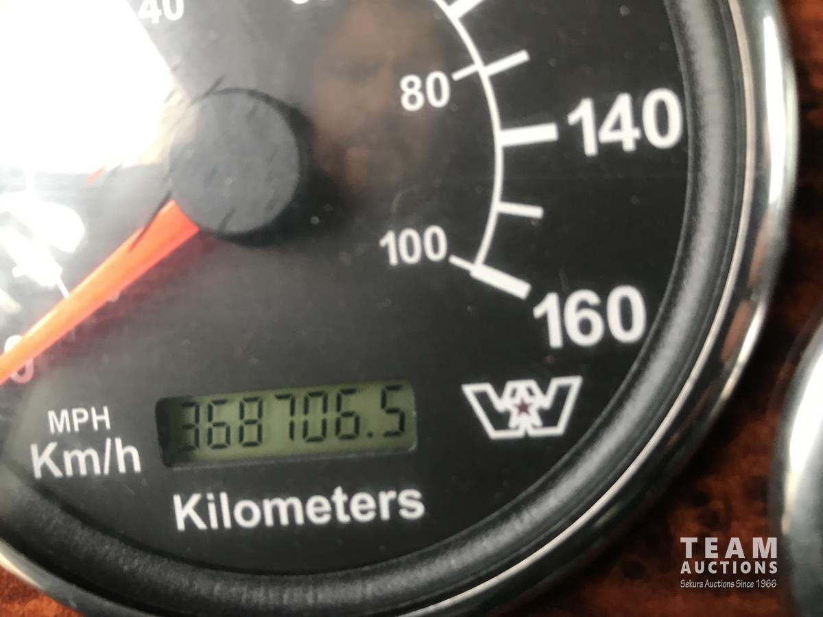 Detroit SERIES 60 14.0 L L6 515 HP diesel engine, Webasto engine heater, engine brake, engine block heater, Eaton Fuller 18 speed manual transmission, Webasto cab heater, mid rise 32 inch sleeper, A/C, cruise control, air ride driver seat, stereo, hydraulic wet kit, Magnum aluminum headache rack, steel tool boxes, air ride cab, chain holders, air ride suspension, 16,000 lb front axle, 46,000 lb rear axles, 3 way diff locks, 231 inch WB, all aluminum wheels, 425/65R22.5 front tires, 11R24.5 rear tires