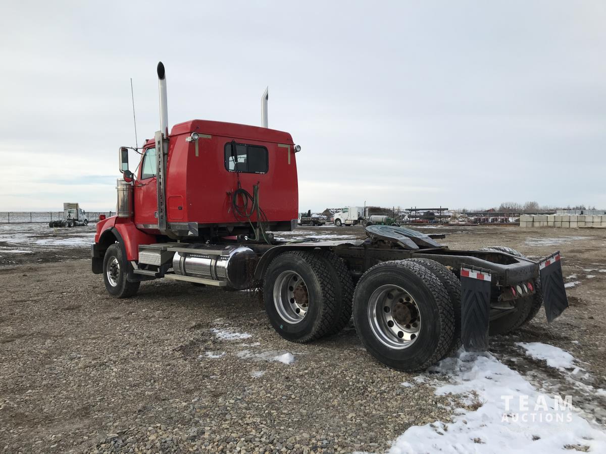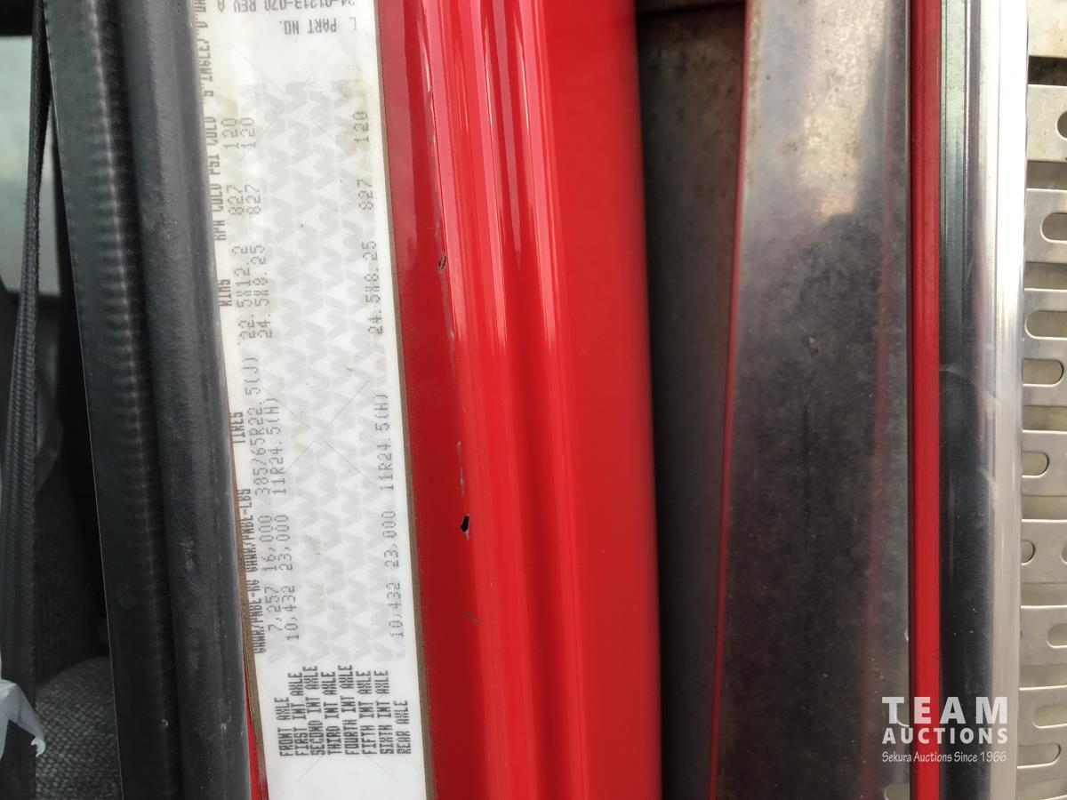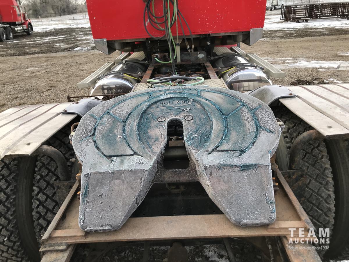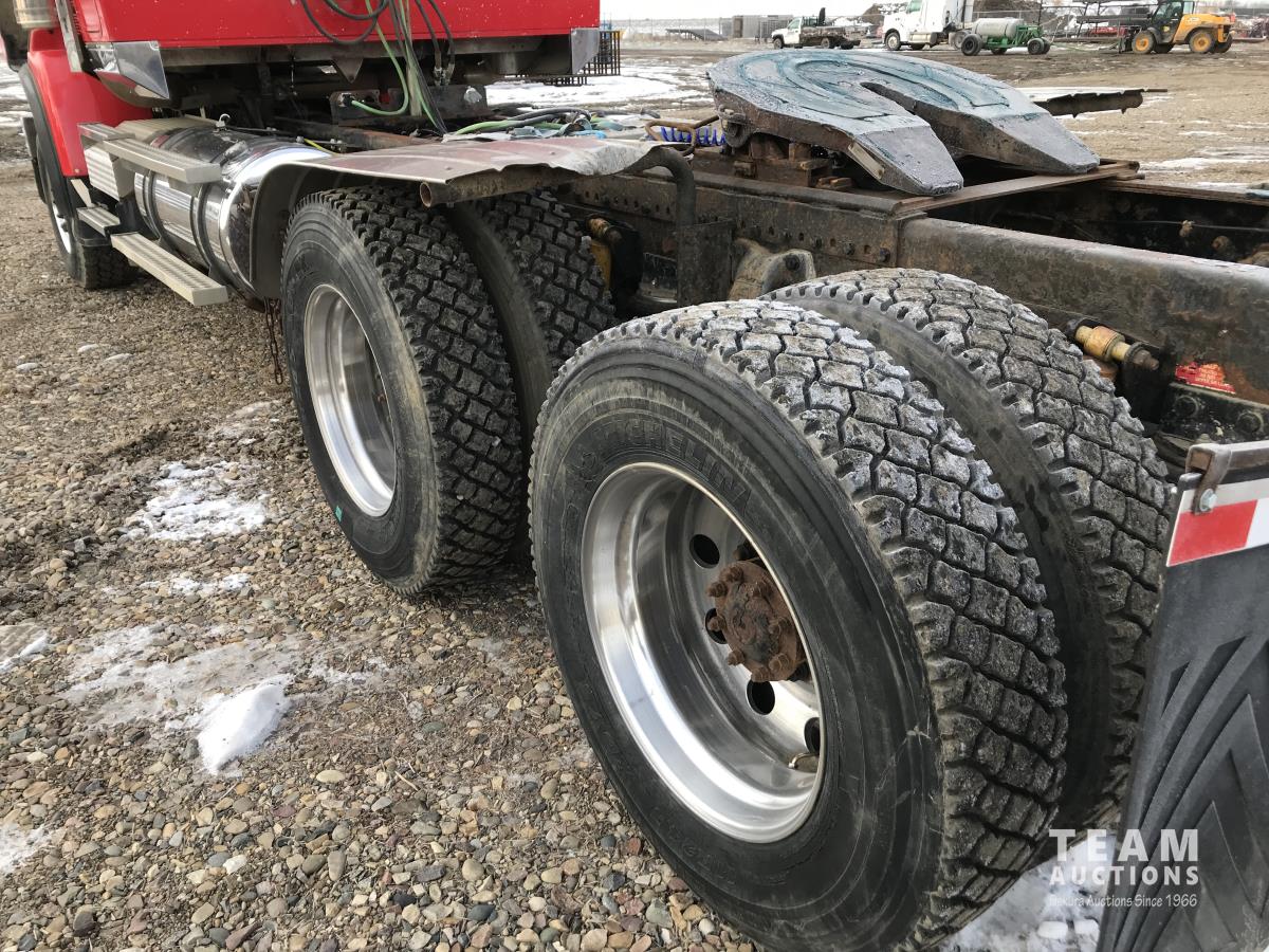 Detroit SERIES 60 14.0 L L6 515 HP diesel engine, engine brake, engine block heater, Eaton Fuller 18 speed manual transmission, mid rise 32 inch sleeper, A/C, cruise control, air ride driver seat, stereo, chain holders, air ride suspension, 16,000 lb front axle, 46,000 lb rear axles, 3 way diff locks, 231 inch WB, all aluminum wheels, 385/65R22.5 front tires, 11R24.5 rear tires